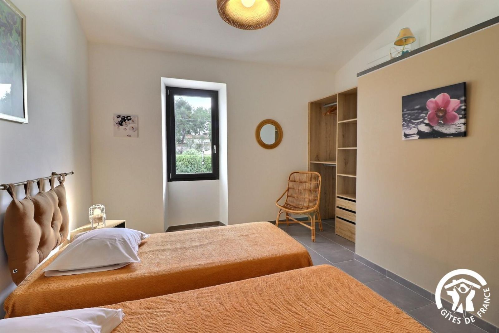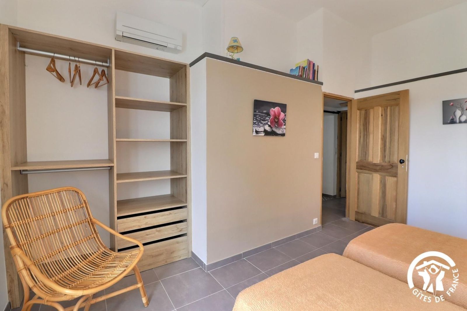 - Une 2ème chambre avec 2 lits 1 personne 90x200cm, penderie dressing et fauteuil en osier.
