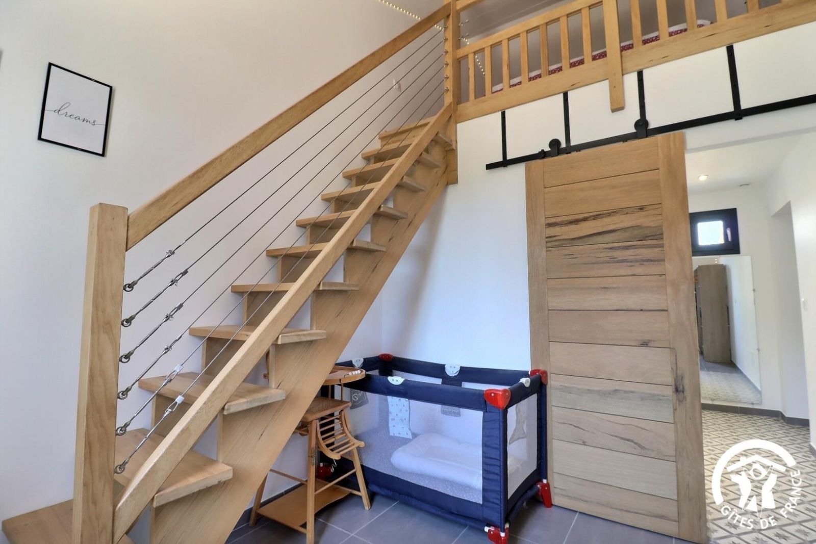 - Une 1ère chambre avec 1 lit 2 personnes 160x200cm, commode et fauteuil. (possibilité de chambre bébé dans une pièce attenante non chauffée)