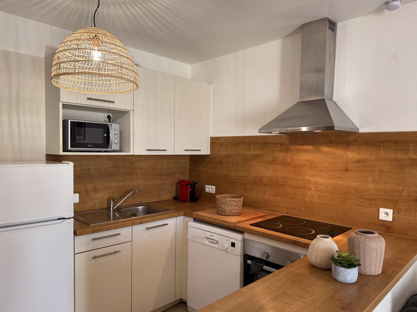 Équipements : Four, micro-ondes, réfrigérateur, lave-linge, lave-vaisselle.