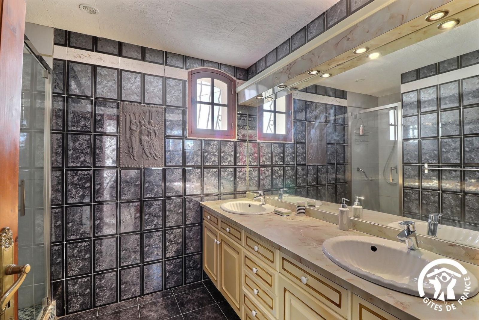 - une salle d'eau avec double vasque, meuble sous vasque et douche 80x80cm.