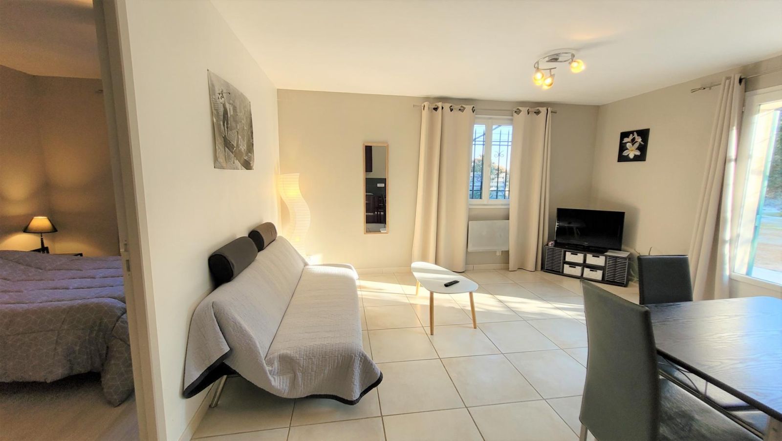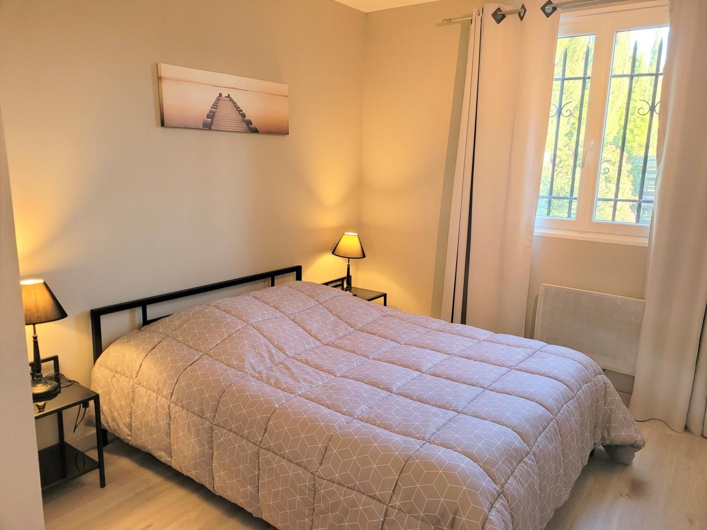 En pleine campagne, sur une exploitation agricole biologique (arboriculture et maraîchage). Gîte mitoyen à un autre gîte mais bien séparé et sans vis-à-vis. Cour privative 500 m² environ entièrement clôturée, terrasse de 33 m² sous pergola avec salon de jardin. Barbecue électrique. Idéalement située aux pieds des Alpilles : entre Arles et Avignon. Entourée de villages typiquement Provençaux : Maillane, St Rémy de Provence, Les Baux de Provence, Fontvielle (et le moulin de Daudet)... A 40 minutes de la Camargue, de la mer (Les Saintes Maries, Le Grau du Roi, La Grande Motte), de Nîmes, du Pont du Gard, de la Fontaine du Vaucluse de Gordes et de Roussillon. Gite de plain pied : cuisine équipée (four, micro-ondes) ouverte sur le salon, espace repas, canapé convertible avec TV écran plat. Une chambre avec 1 lit 2 personnes en 140x190cm. Salle d'eau/WC avec douche, porte-serviettes chauffant. Lave linge et fer à repasser. Chauffage inclus. Ménage de fin de séjour inclus. Animaux acceptés gratuitement. Possibilité de location de draps et linge de toilette. Parking dans la cour fermée.