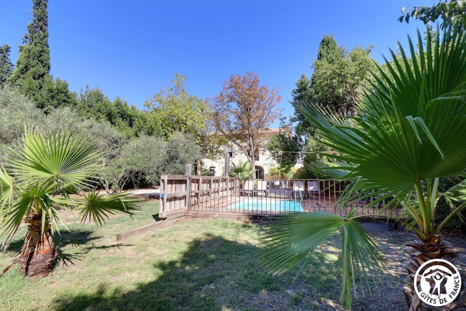 Grand jardin 1500 m² arboré avec champ d'oliviers et belle terrasse de 225 m² ombragée par les platanes, terrasse couverte avec salons de jardin et braséro. Piscine 3x4m, prof 1,3m, accessible de mi-juin à fin septembre.