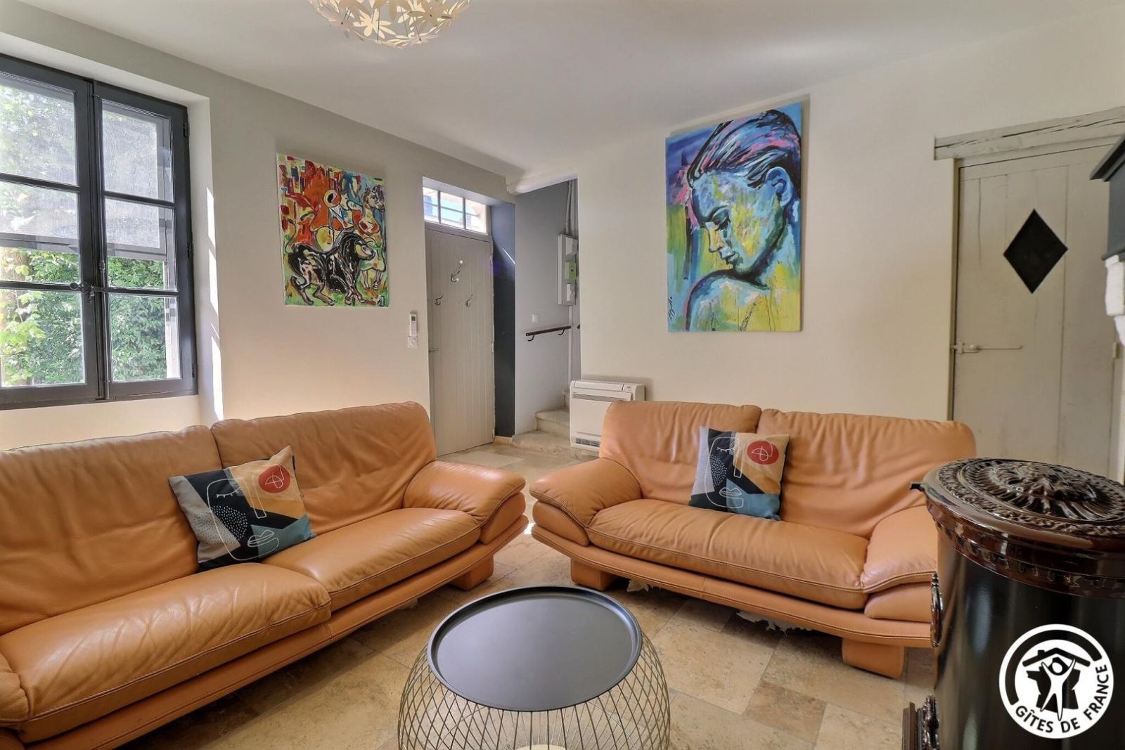 - Salon avec canapés de qualité, TV écran plat, cheminée d'ornement et poêle à bois.