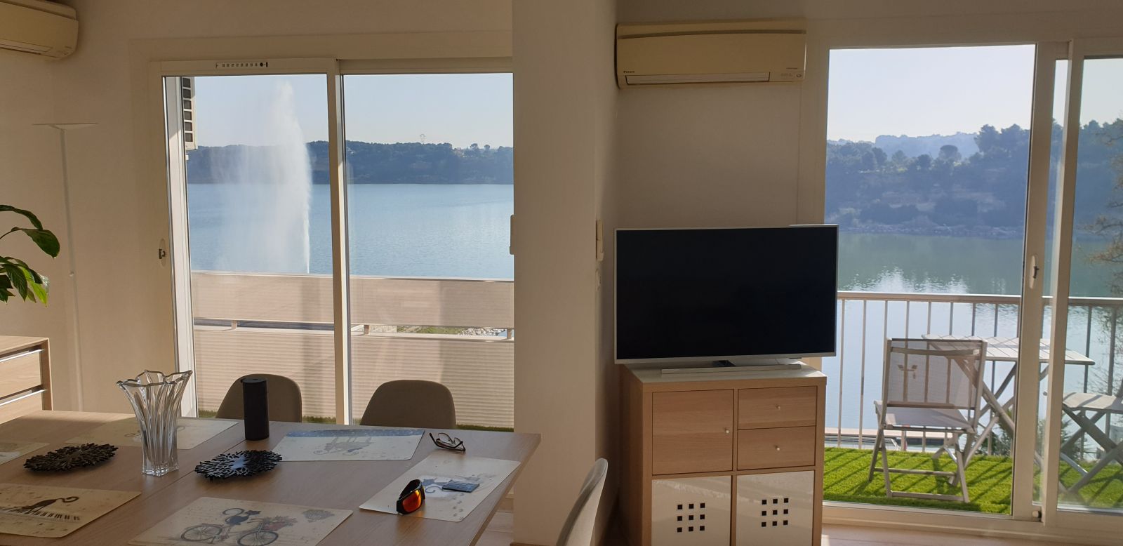 Appartement T3 de 65 m² au 1er et dernier étage, d’une petite résidence de 6 appartements avec une superbe vue sur l’étang de l’Olivier et le jet d’eau.