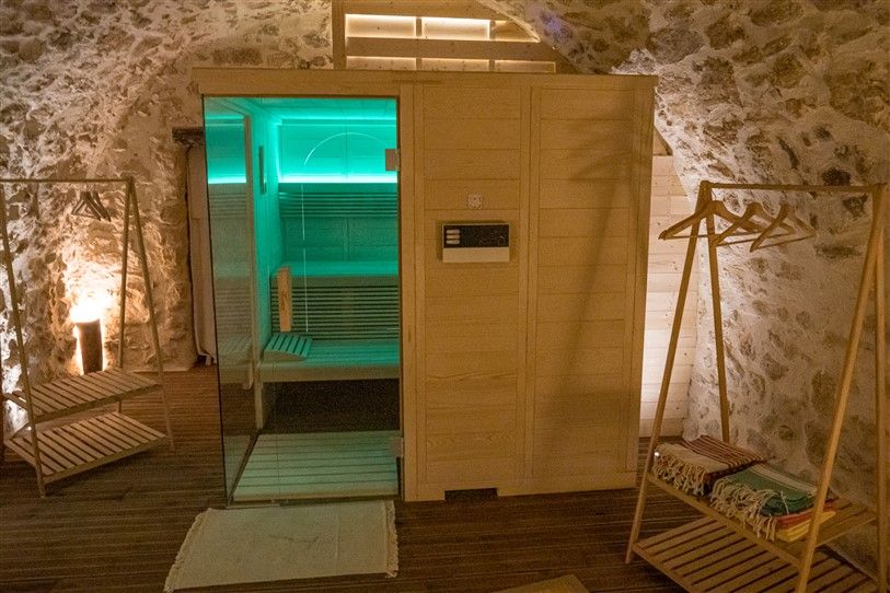Sauna 4 places accessible à la demande (20€ pour 1h30). Tout inclus : draps, linge de toilette, ménage de fin de séjour, chauffage et électricité. Seules les prestations bien-être sont en option à la demande.