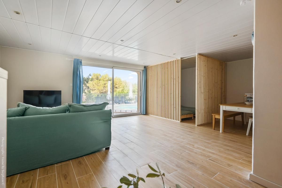 A mi-chemin entre la Sainte Victoire et la Sainte Baume, entre Aix-en-Provence et Cassis, le gîte Fanny est un studio situé au rez-de-chaussée de la belle villa des propriétaire. Il dispose d'une belle vue sur les collines de Pagnol, et donne directement sur une terrasse et sur la piscine (7x3.5m, profondeur 1.5m, ouverte du 1er mai au 1er octobre de 10h à 20h), partagée avec les propriétaires et deux autres gîtes. La piscine est sécurisée par une barrière vitrée avec portillon de sécurité.
