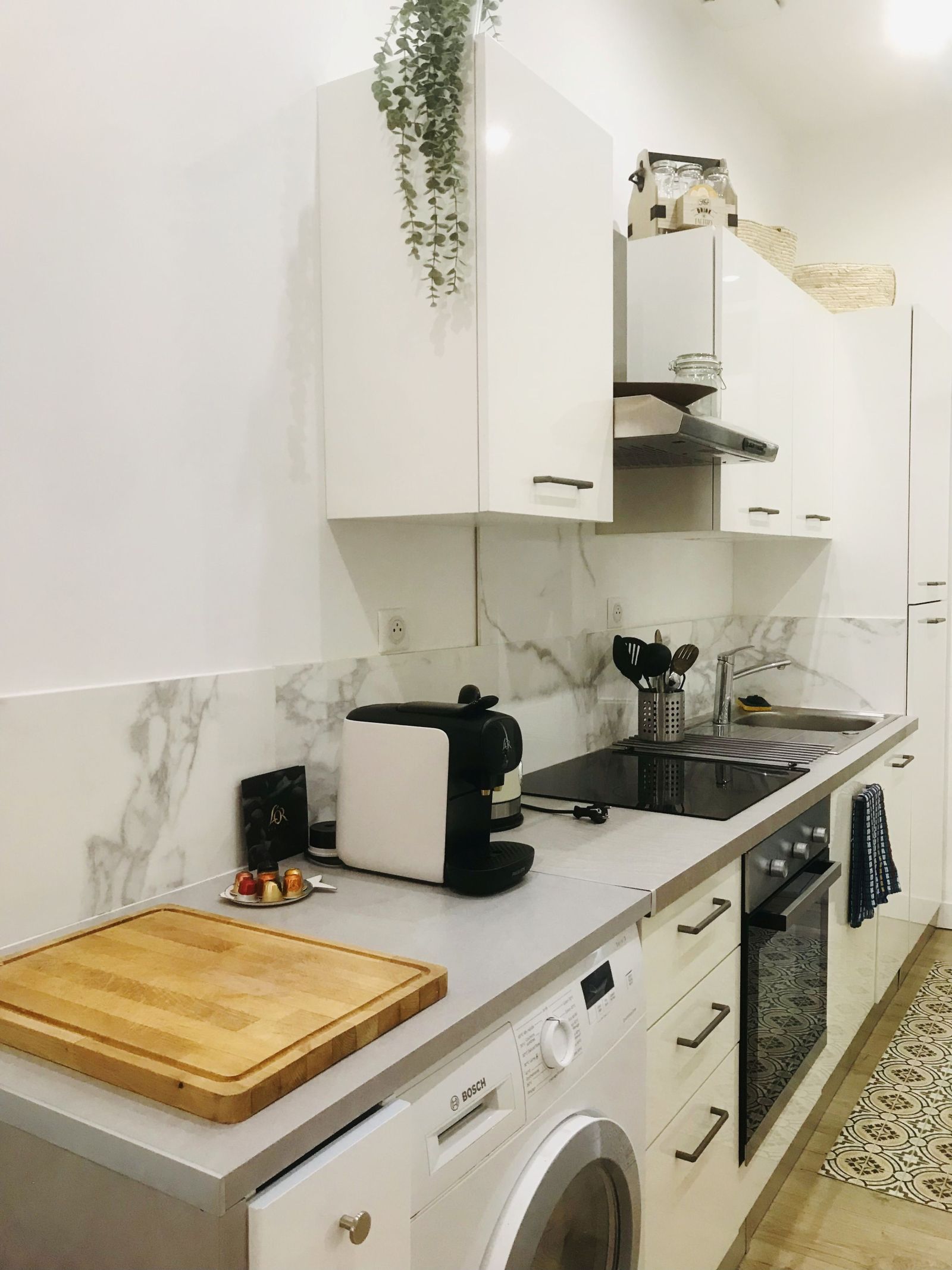 Votre appartement T3 entièrement rénové avec sa décoration contemporaine et soignée au 1er étage d’une maison de ville totalement rénovée avec goût et prestations de qualité.