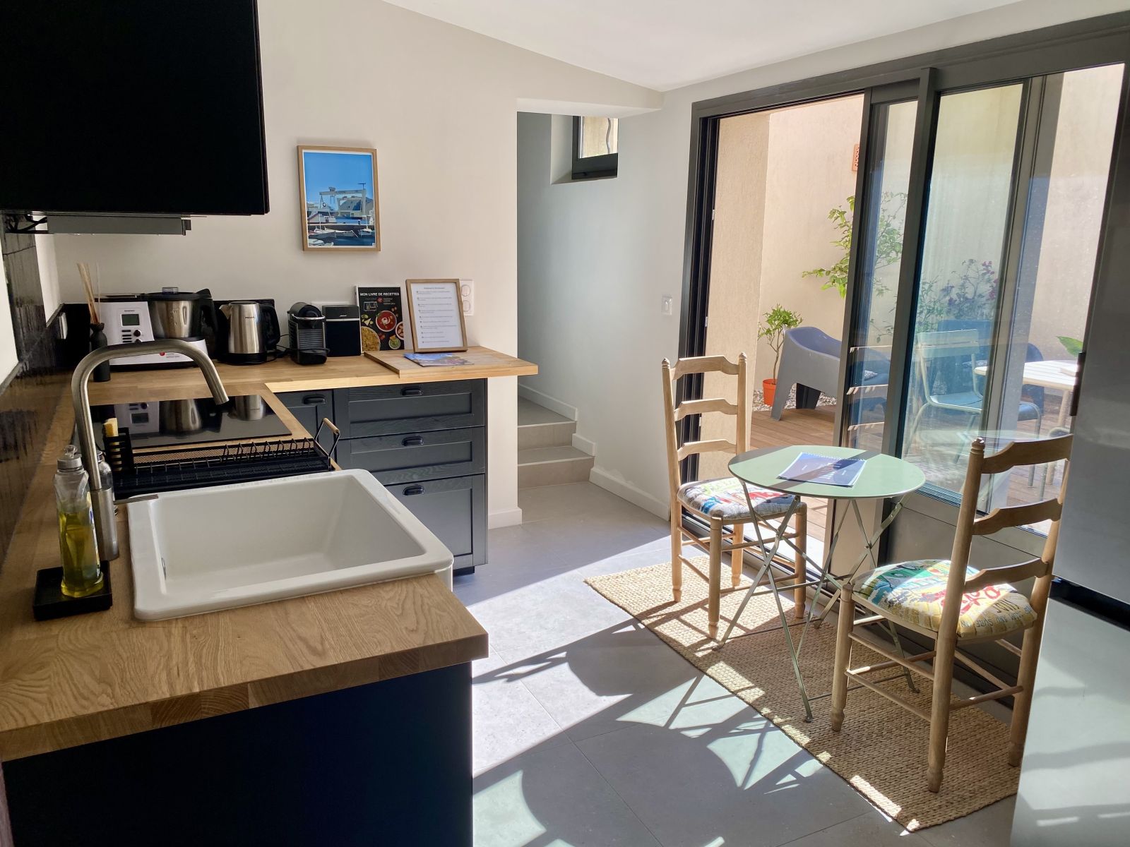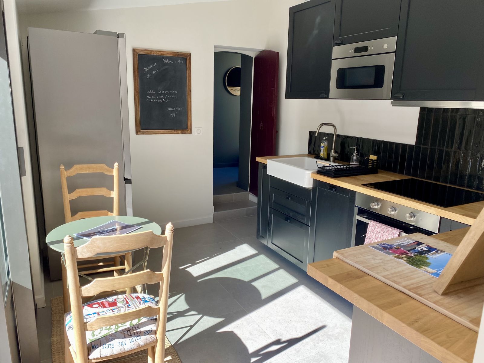 La cuisine est entièrement équipée : réfrigérateur, congélateur, plaque à induction, four, lave-vaisselle, cafetière à dosettes, bouilloire.. tout est là pour faciliter votre séjour.