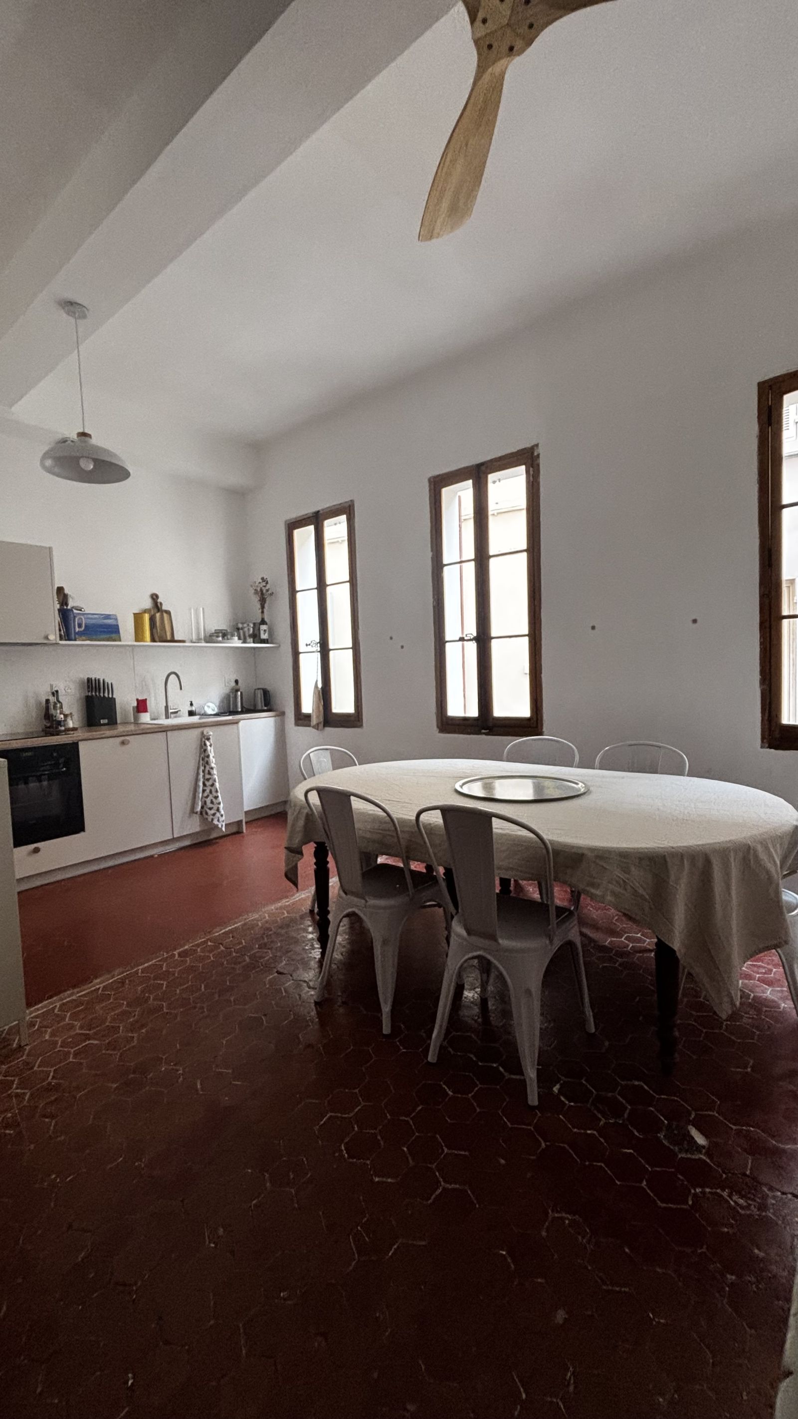 Profitez d'une cuisine lumineuse et fonctionnelle, équipée de tout le nécessaire avec sa belle table à manger pour vos repas en famille ou entre amis.