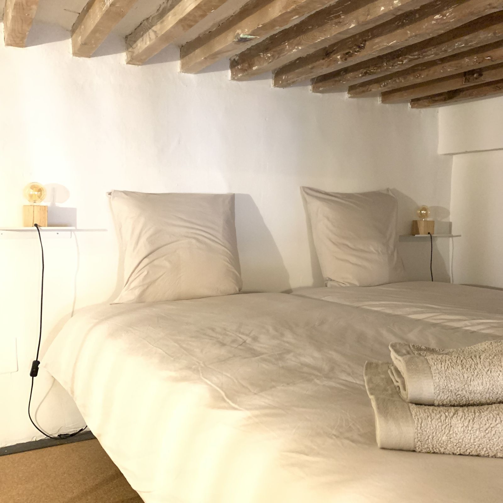 - Chambre 2 en mezzanine isolée : 2 lits simples 90cm et petit dressing