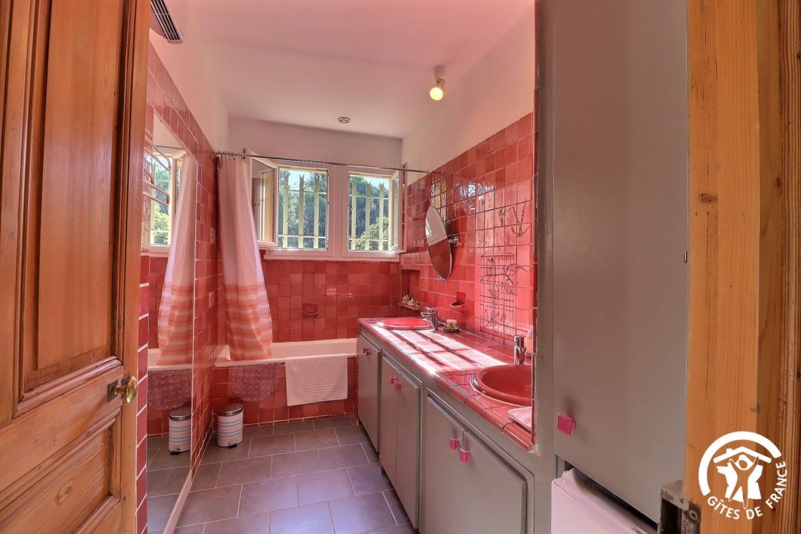 - Salle de bain avec baignoire, chauffage soufflant et machine à laver