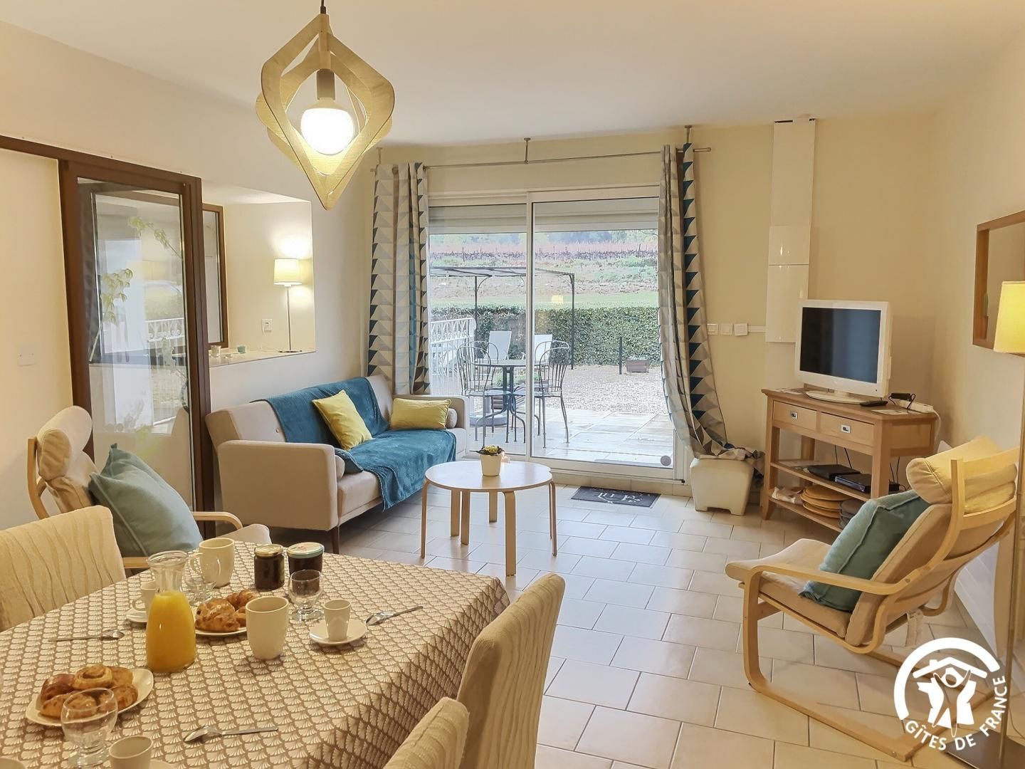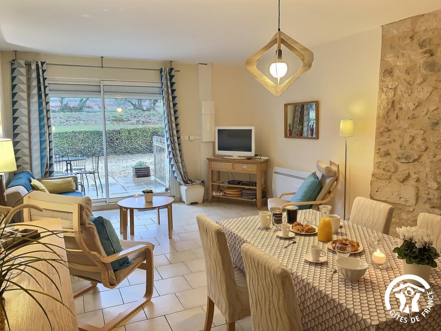 Très lumineux grâce à ses grandes baies vitrées, le gîte offre :