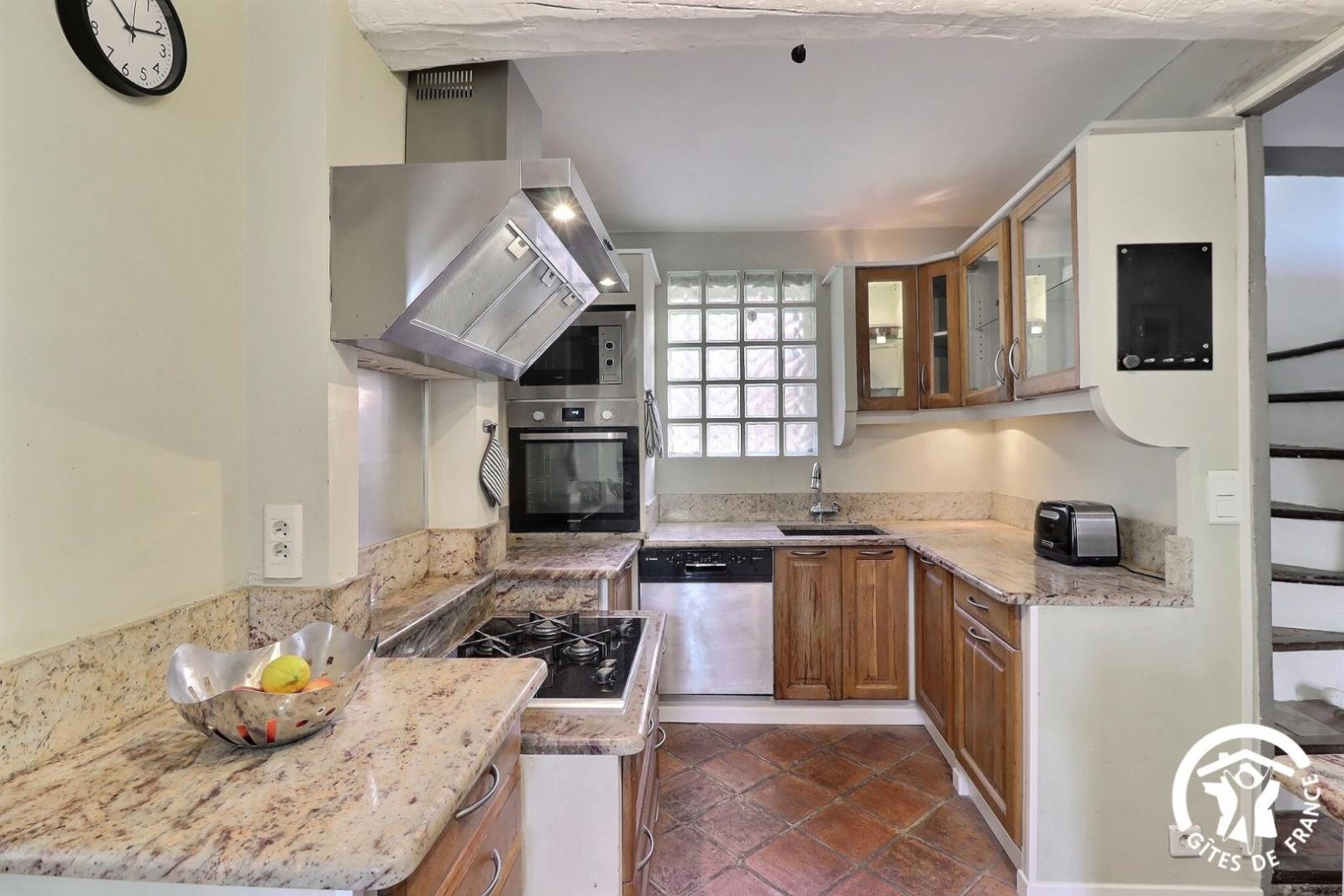 - Cuisine indépendante avec lave-vaisselle, four, micro-ondes, 4 feux gaz, hotte aspirante, réfrigérateur, congélateur et espace bar avec 2 tabourets.