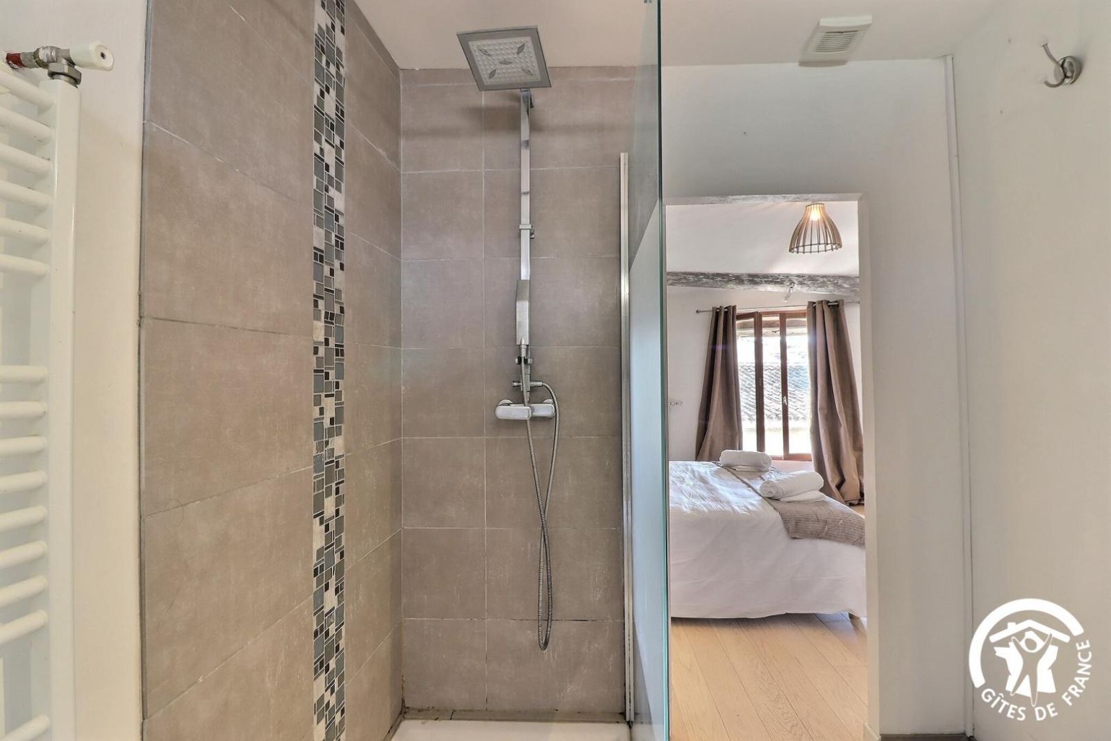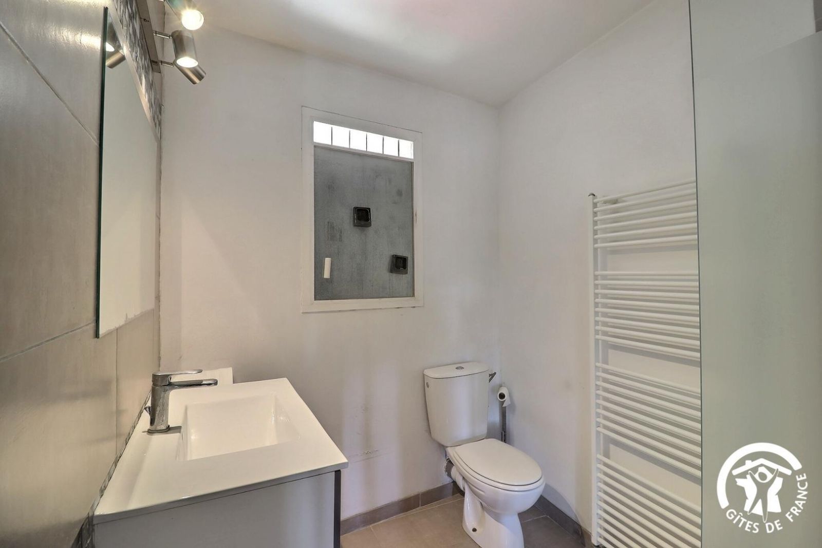 - Chambre avec lit 160x200cm, placard fermé, miroir en pied. Salle d'eau privative avec douche italienne, vasque, sèche-serviettes et WC.