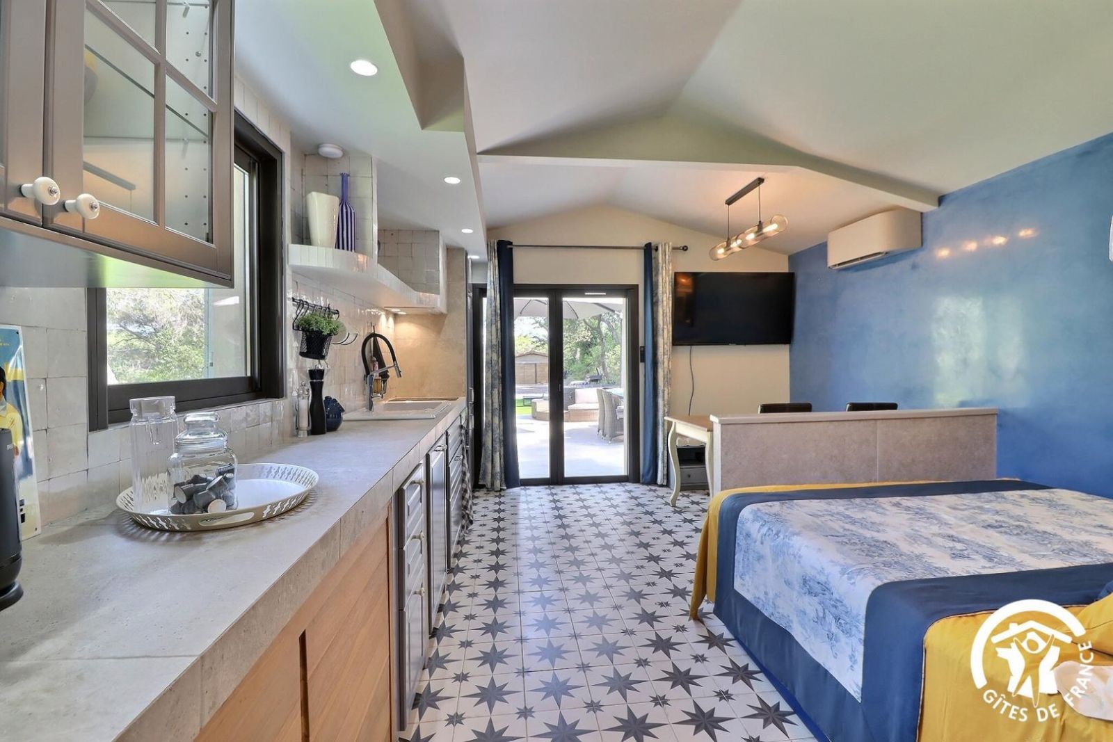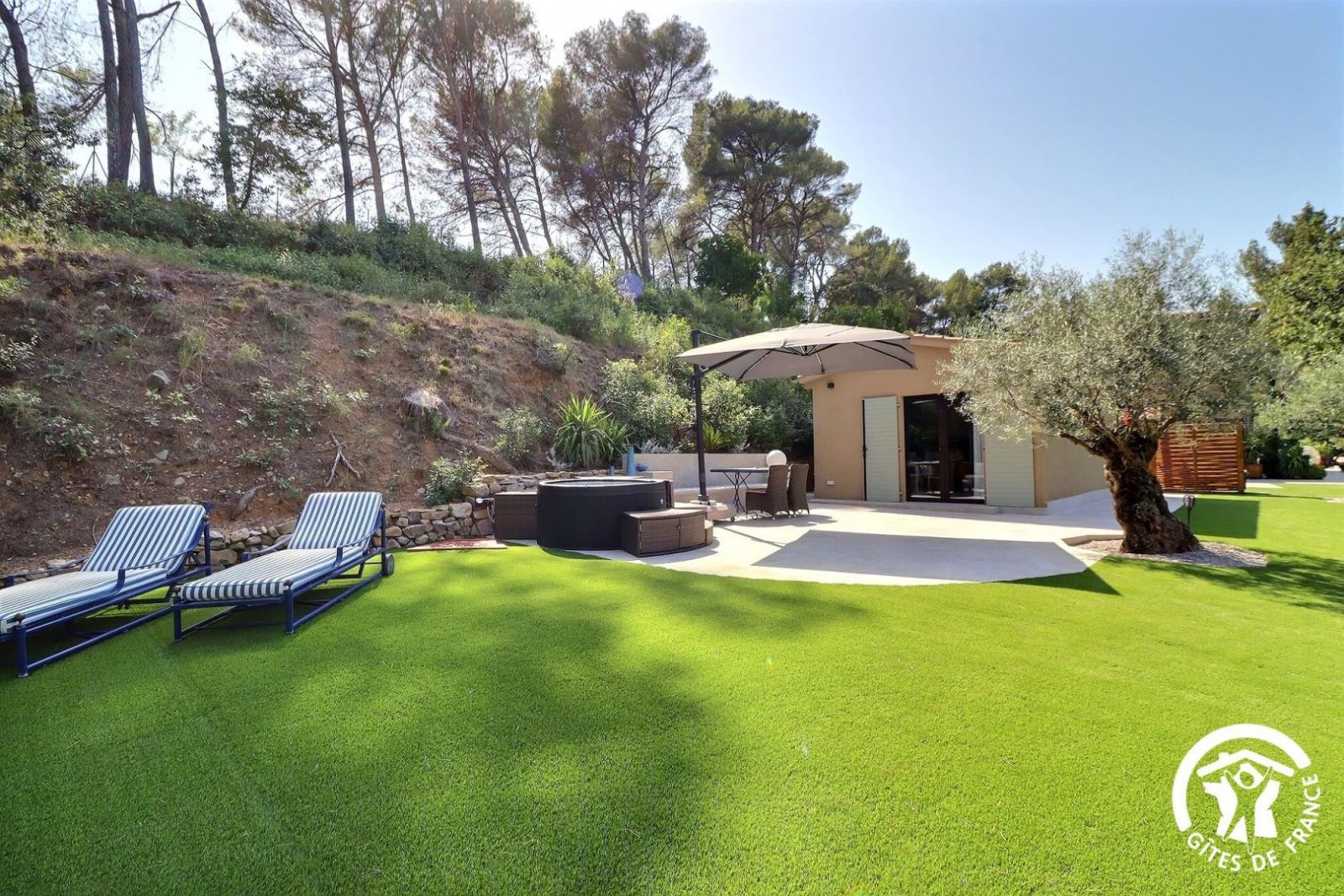 En campagne aixoise, entre le centre-ville et la Sainte Victoire, la Maisonnette est un studio indépendant entièrement rénové sur le terrain des propriétaires. Bel extérieur privatif au milieu des pins avec gazon synthétique, salon de jardin et spa. Idéal pour un séjour en couple pour découvrir la Provence tout en détente. De plain pied, la Maisonnette est indépendante et son extérieur est séparé du gîte voisin par des brise-vue en bois et de la végétation. Pièce de vie climatisée avec coin repas (table, chaises et banc), grande TV connectée, cuisine ouverte équipée (réfrigérateur/congélateur, combiné four/micro-ondes, lave-vaisselle, petit électroménager), lit 160x200cm.
