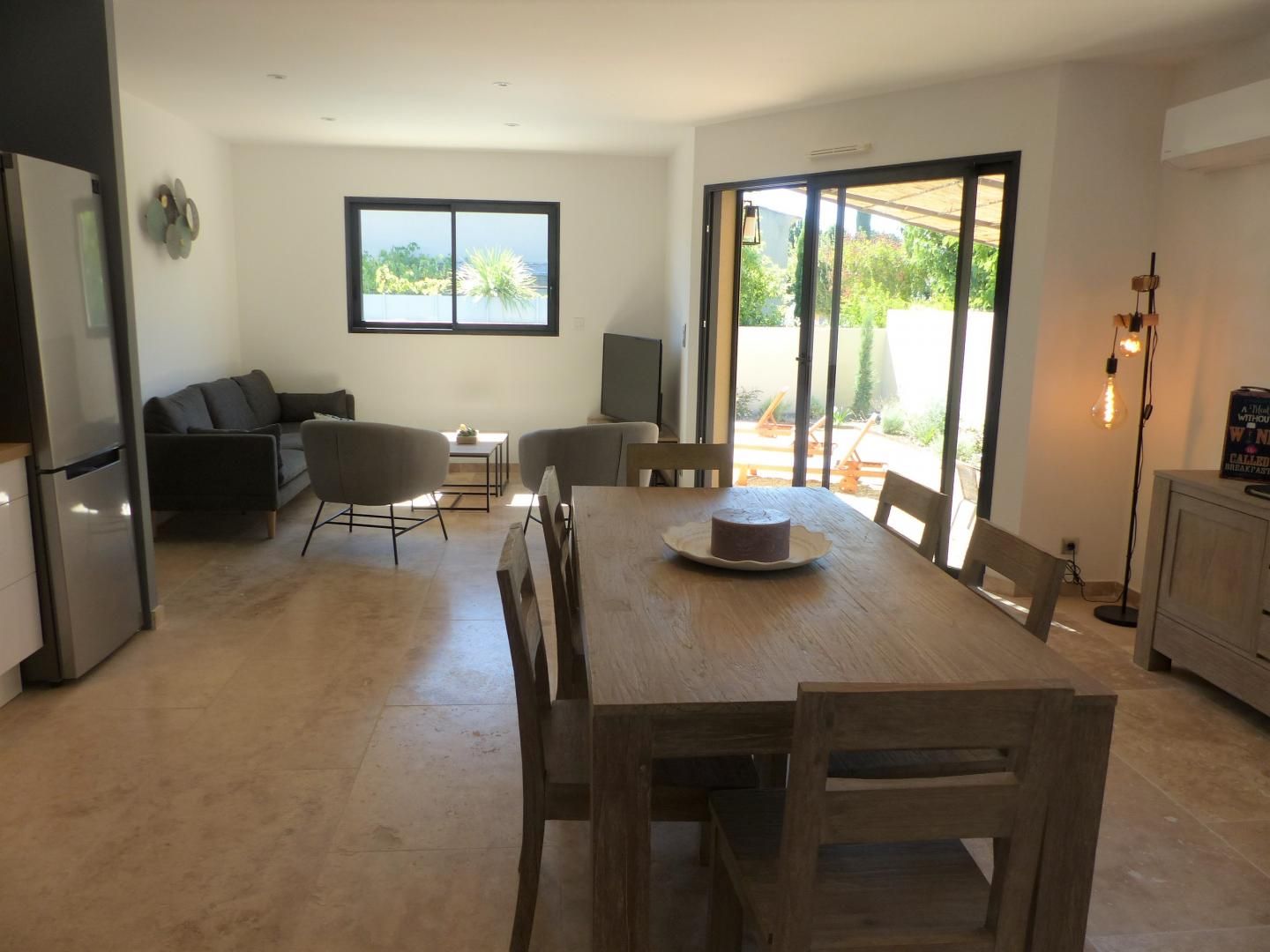 3 chambres indépendantes, avec 1 lit 160x200, 1 lit 140x190 et 2 lits 90x190. La chambre parentale dispose de sa salle d'eau privative, avec belle douche italienne. Sanitaire indépendant avec douche italienne et baignoire d'angle. Wc indépendant. Cour en gravier avec salon de jardin, et ombragée par une pergola. Transat au bord de la piscine. Barbecue. Wi-fi. Lit et chaise bébé sur demande. Ménage de fin de séjour inclus. Charges comprises : linge, draps, climatisation réversible.