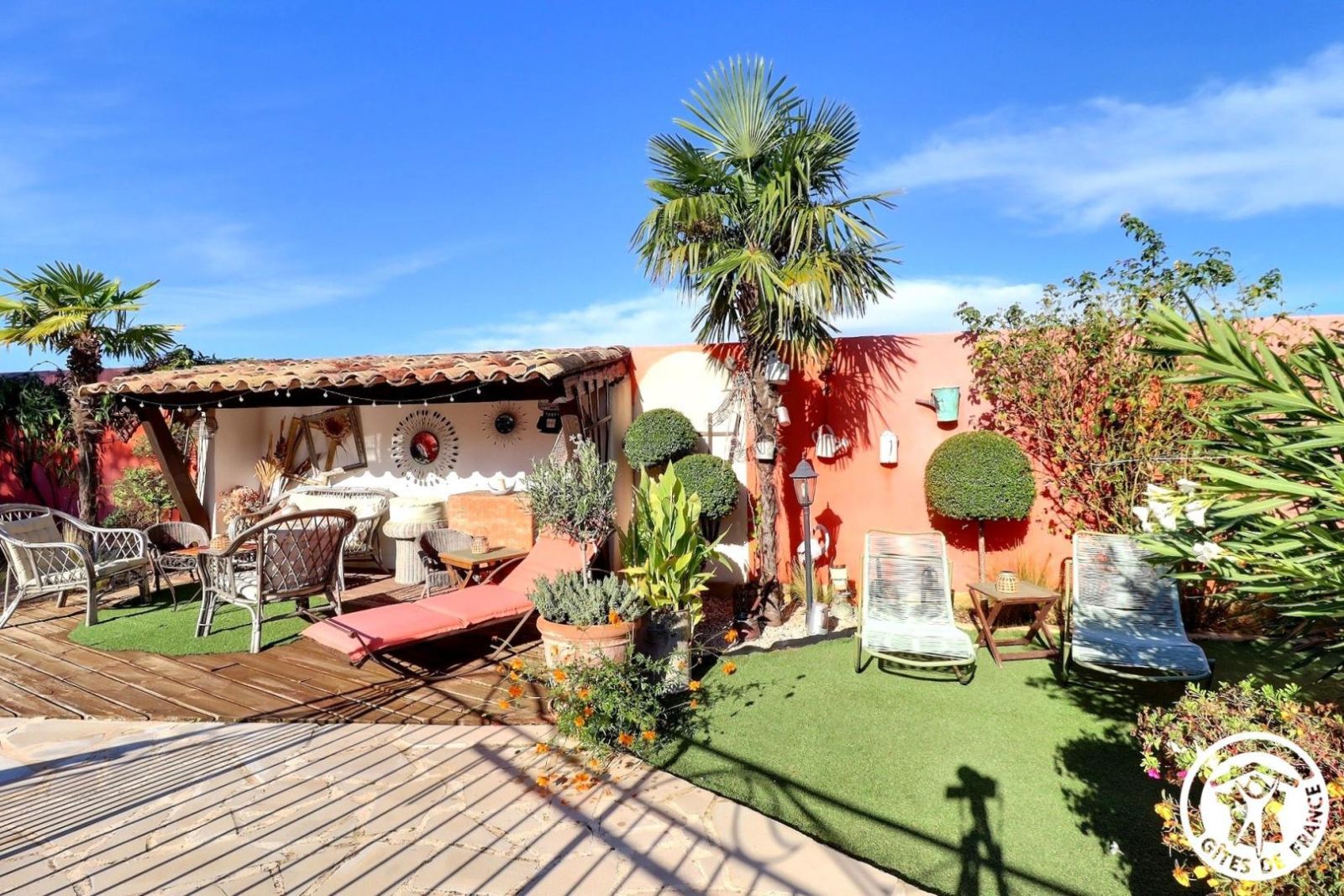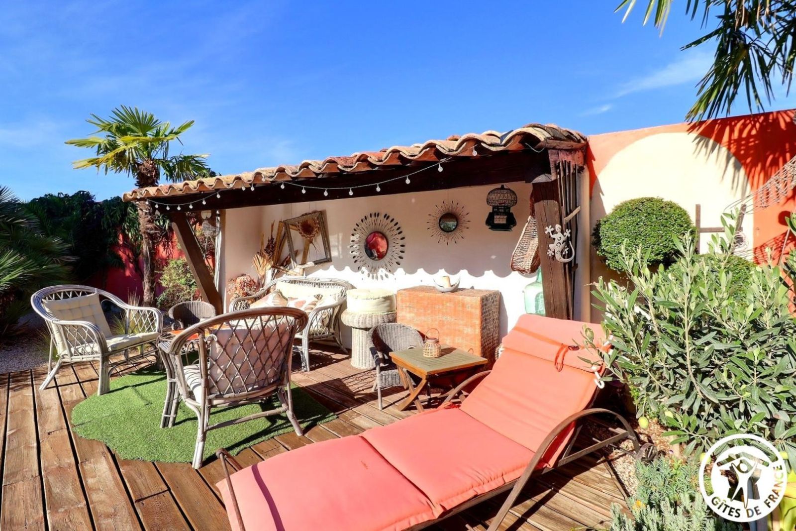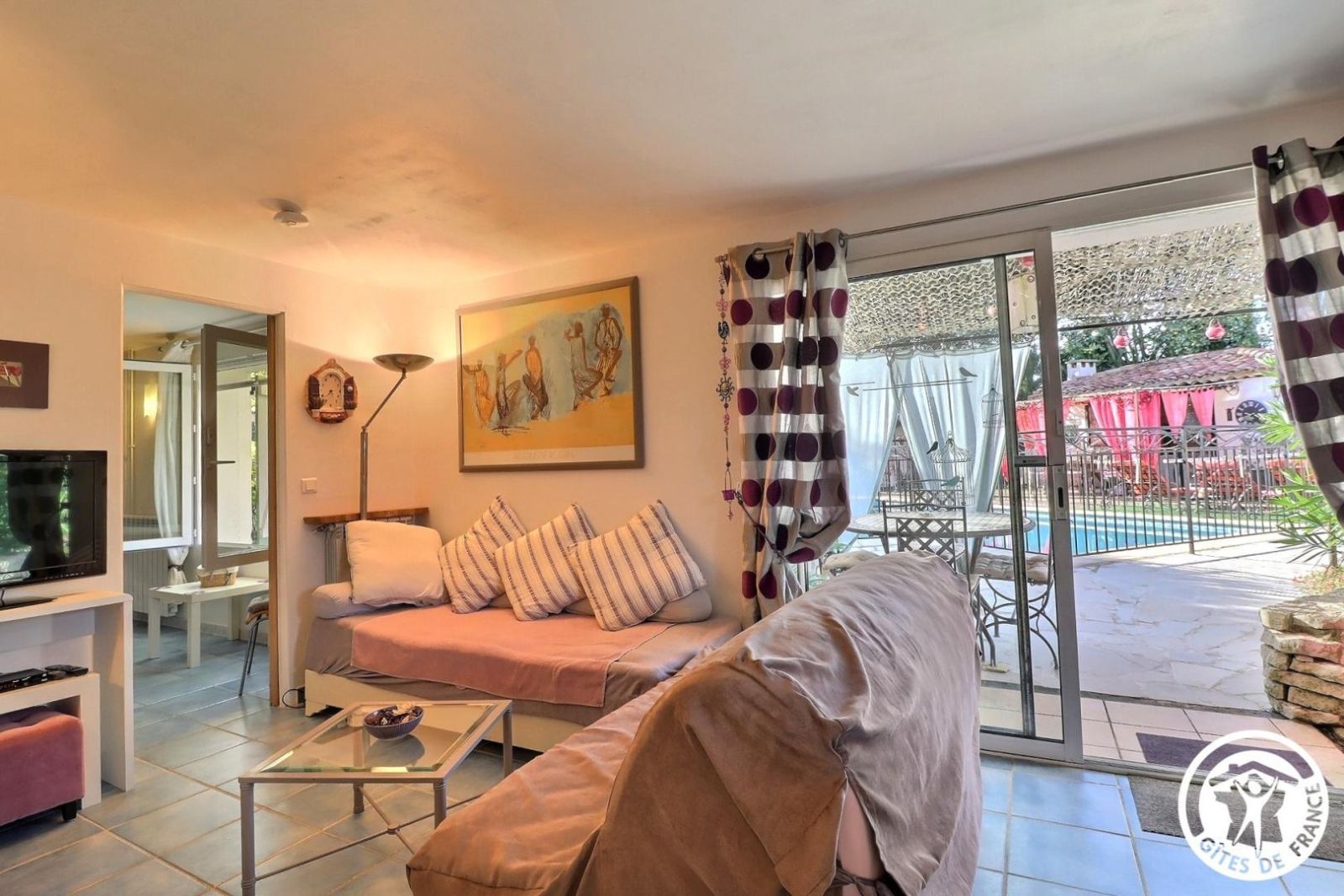 Appartement pour 4 personnes avec très bel espace extérieur fleuri et jolie piscine.