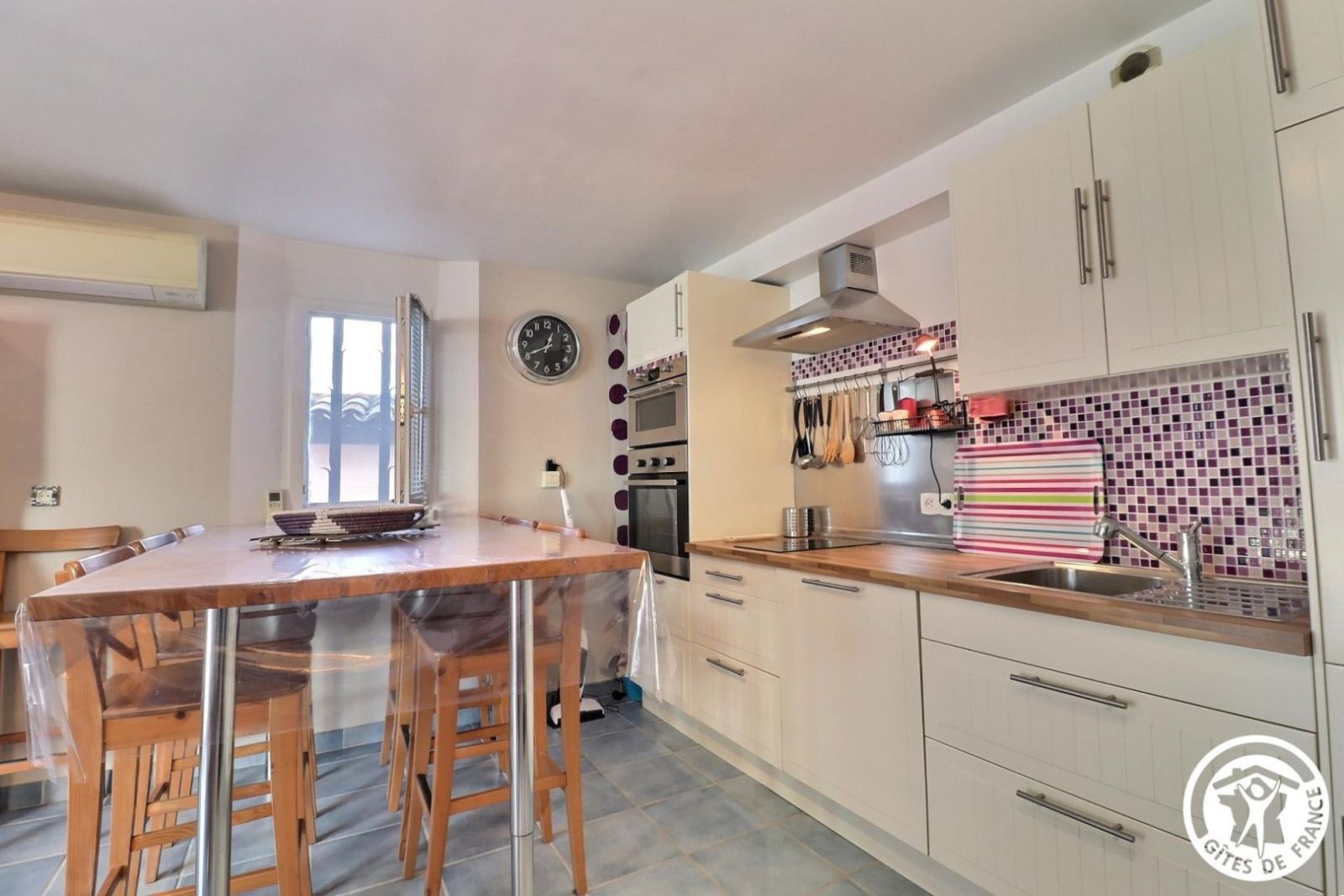 - Un séjour avec cuisine équipée (plaque 2 feux vitrocéramique, hotte, four, micro-ondes, lave-vaisselle et réfrigérateur/congélateur), espace repas (table haute et 8 chaises hautes), coin salon (canapé convertible BZ avec matelas de qualité, banquette/lit et TV écran plat) et climatisation réversible.