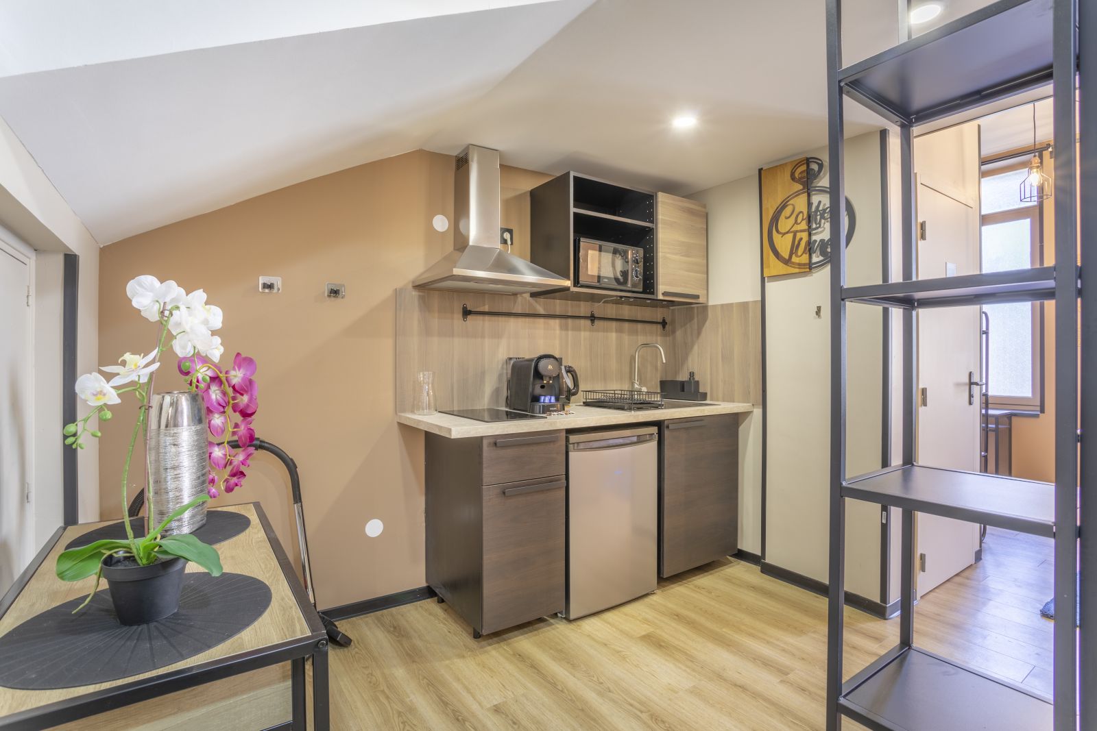 Un superbe appartement pour 2 personnes situé au 2e étage avec ascenseur. Il se compose : d'une cuisine intégralement équipée (frigo, micro-ondes, plaque à induction, four, machine à café, bouilloire), 1 chambre avec lit double (160x200cm) , une salle de bain séparée avec douche, un WC séparé, TV et Internet haut débit (fibre) et draps et serviettes de toilette fournis et jeux de cartes.