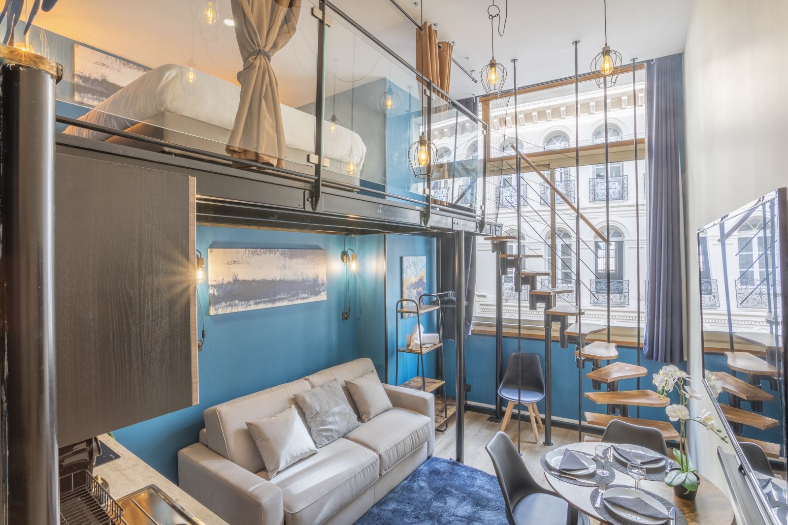 Un superbe appartement situé au 1er étage avec ascenseur. Il se compose : Une cuisine intégralement équipée (Frigo, Micro-ondes, plaque à induction, four, machine à café, bouilloire), Un séjour avec canapé lit (160x200cm) président, 1 chambre avec lit double (160x200cm) en mezzanine, une salle de bain séparée avec douche, un WC séparé, TV et Internet haut débit (fibre) et draps et serviettes de toilette fournis et jeux de carte.