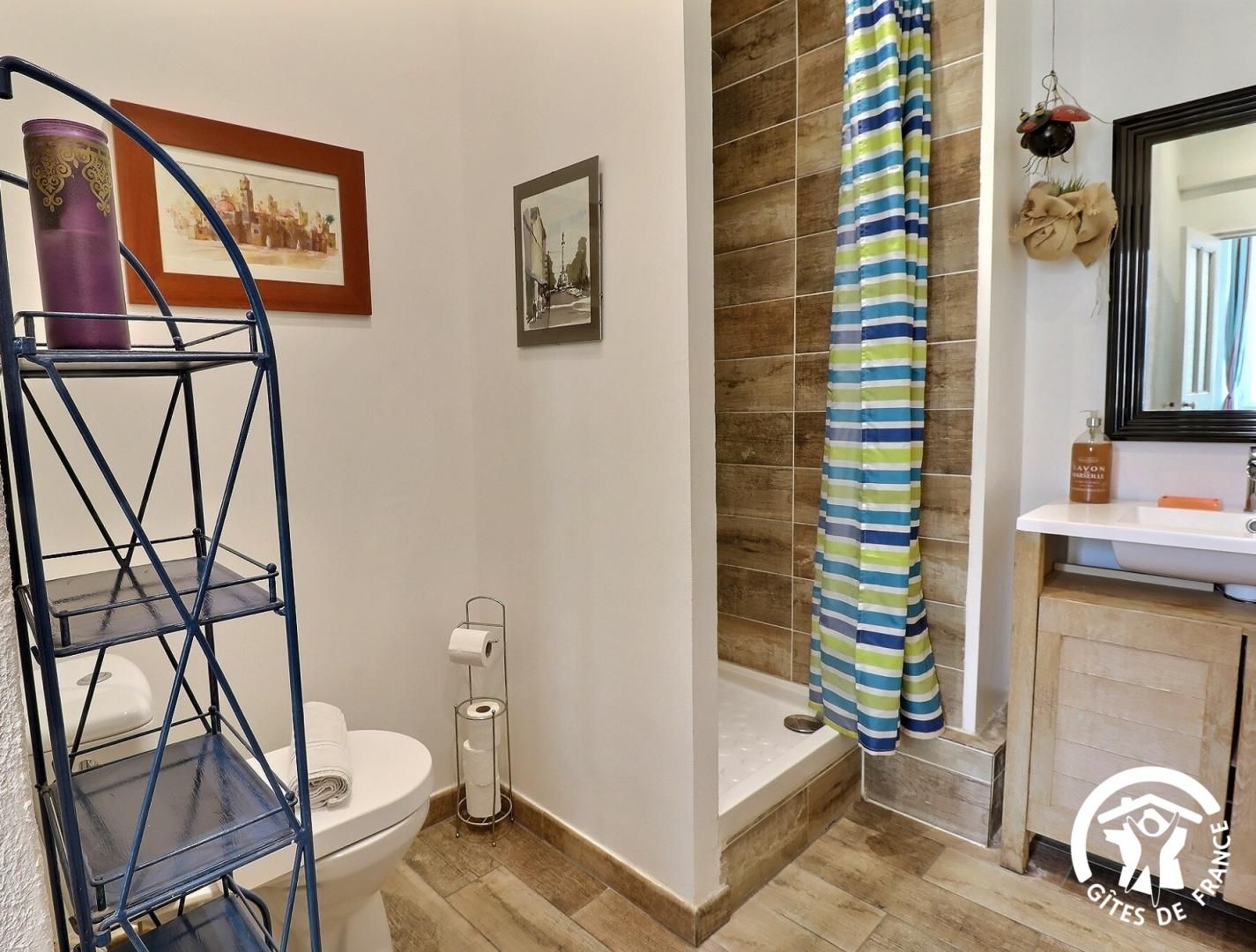 Salle d'eau avec douche, vasque, Wifi, télévision écran plat, buanderie commune avec lave linge et sèche linge. Toutes charges comprises : chauffage électrique, climatisation, draps et linge, ménage de fin de séjour. Ventilateur, double vitrage, lit, baignoire et chaise bébé sur demande. Place dans parking souterrain mise gracieusement à disposition.