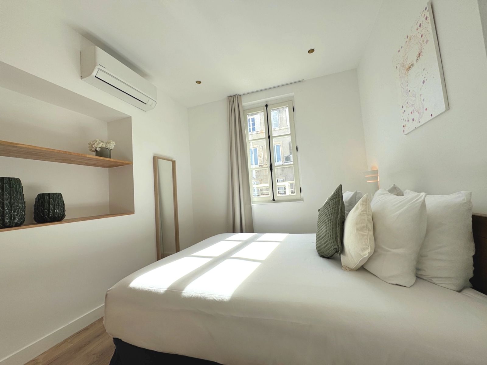 Cet appartement est composé d'une pièce à vivre, d'une chambre (lit queen size) et d'une salle de bains indépendante. Il peut accueillir de 1 à 4 personnes (lit + canapé lit). Appartement très calme dont la chambre donne sur cour.