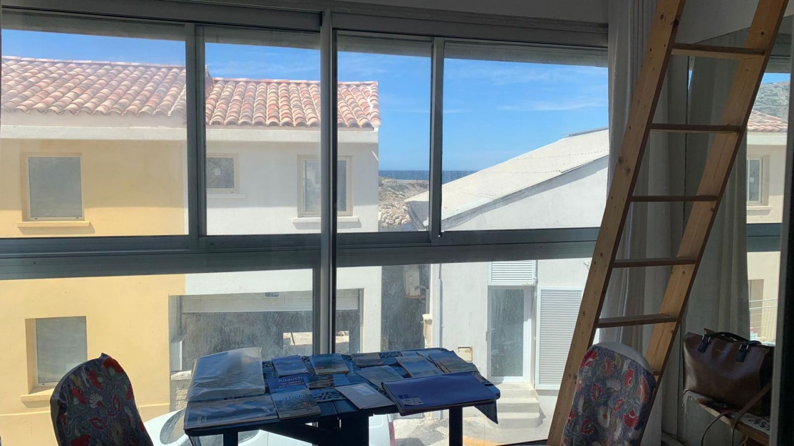 Pour y accéder, une seule route, mais aussi pendant toute la saison estivale la navette maritime qui rejoint la Pointe Rouge puis le Vieux Port. Parking sur la rue (public). Le gîte est un ancien cabanon de pêcheur (pièces de petite surface) ouvrant sur la rue (mini sas de sécurité pour y pénétrer). Simple mais correctement aménagé, avec la salle à manger/cuisine au rez de chaussée (plaques vitrocéramiques, mini lave vaisselle, lave linge, frigo/congélateur, four, micro ondes), espace repas et canapé convertible (120x190cm). Salle d'eau/wc (baignoire sabot). A l'étage (échelle meunière), deux petites chambres avec lit 2 personnes (140x190) dont l'une dispose d'une minuscule salle d'eau avec douche fermée/wc, l'autre de sa véranda avec coin détente (table et fauteuil - télévision écran plat) donnant sur la rue passante et la mer en contrebas. Chauffage électrique + climatisation réversible (une unité au rdc et une au 1er) (inclus) - draps et linge sur demande (en location) - lit et chaise bébé sur demande - ménage en option.