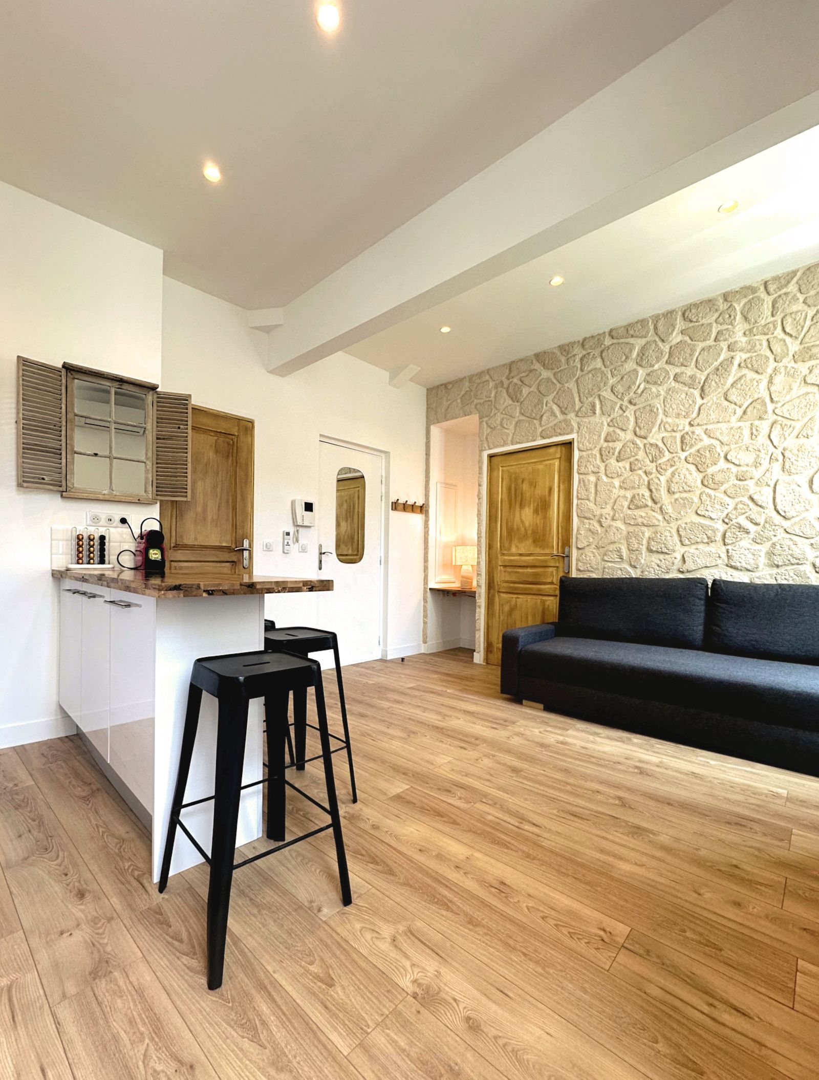 Cet appartement est composé d'une pièce à vivre, d'une chambre (lit queen size) et d'une salle de bains indépendante..