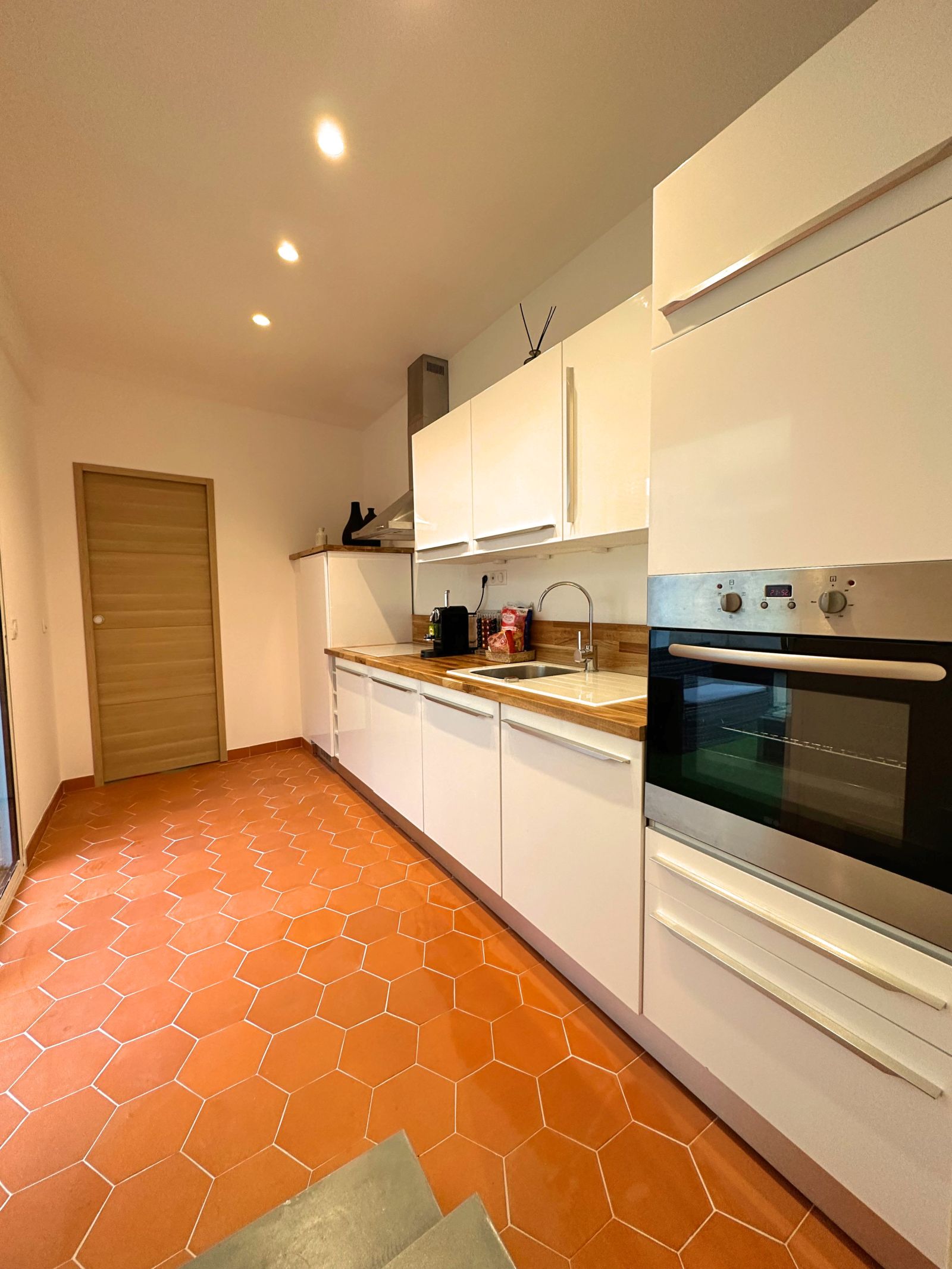Vaste appartement de 70m² situé au 1er étage d'un immeuble haussmannien.Il est situé à l'intérieur d'un patio et possède une superbe terrasse de 15m².