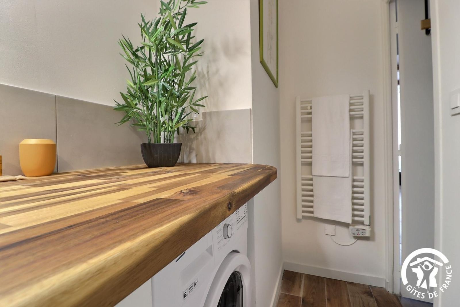 - Salon avec cuisine ouverte équipée : four, plaques 4 feux vitrocéramique, réfrigérateur/congélateur, micro-ondes. Table haute avec tabourets hauts. Canapé, fauteuil, table basse, meubles de rangement e TV connectée. - Grande chambre avec lit 160x200cm, coin salon avec 2 fauteuils et table basse, commode et placard mural. - Salle d'eau avec douche, vasque, sèche-serviettes et lave-linge. - WC indépendant. Wifi. Climatisation réversible dans la chambre. Parking sous-terrain payant à 50m : Estienne d'Orves. Transports en commun à proximité (bus à 100m, métro Vieux Port à 200m, tram à 500m).