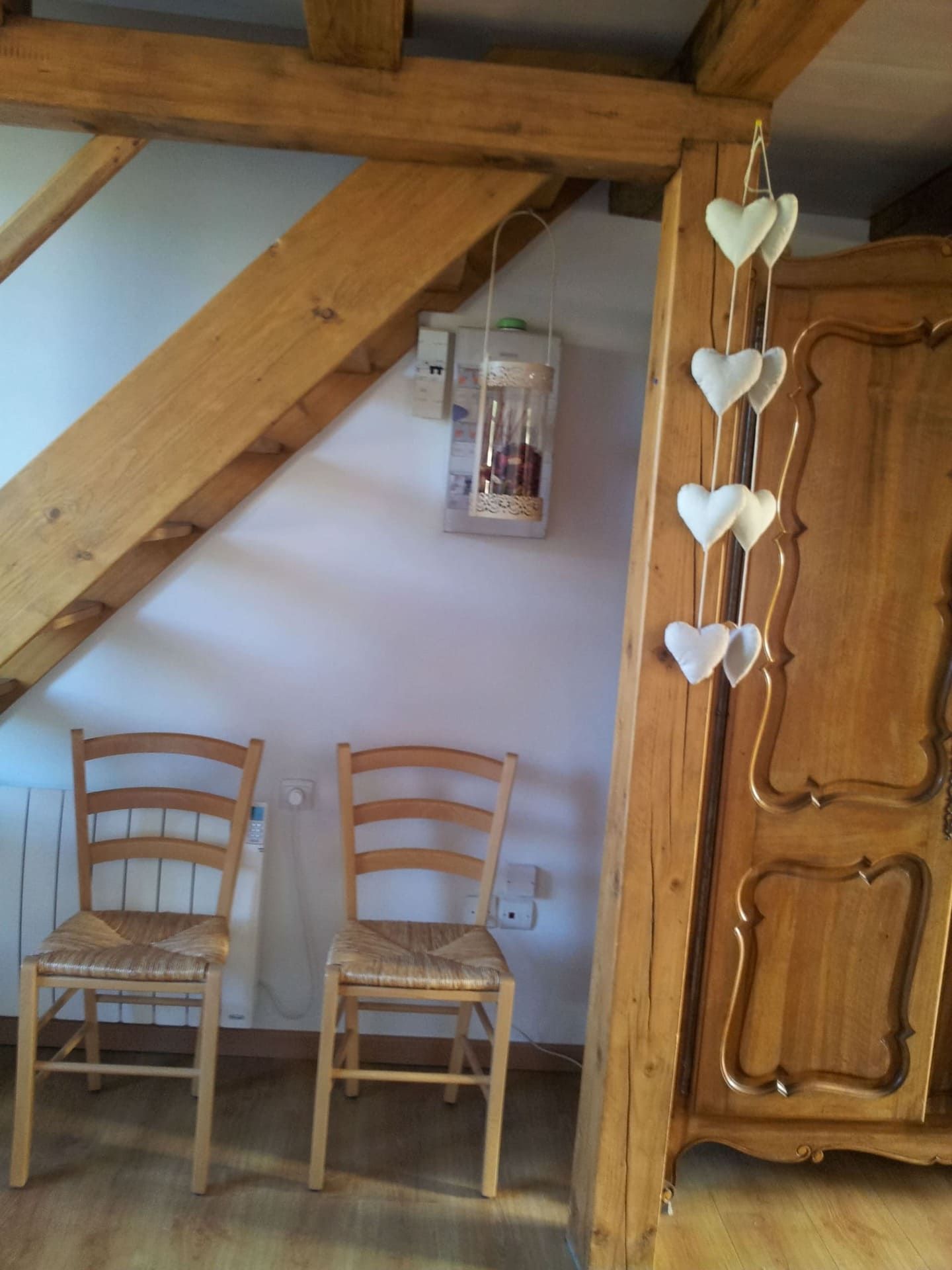 - au 2 ème étage : 1ère chambre avec 1 lit de 2 places (en 140/190), puis une 2ème chambre-mezzanine avec 2 lits d’1 place (en 90/190) et attenant à cette deuxième chambre, un cabinet de toilette (avec grande douche à l'italienne, un meuble-lavabo et un 2 ème W.C à l’intérieur).