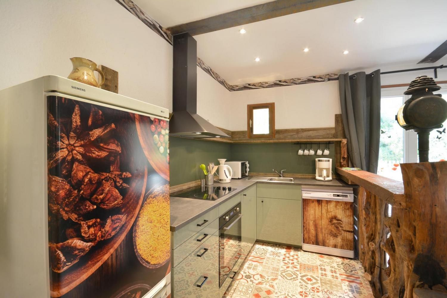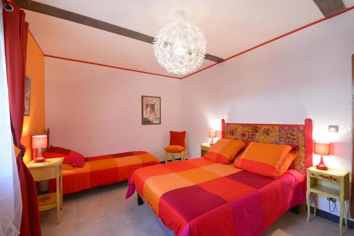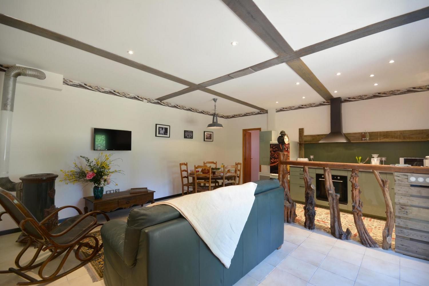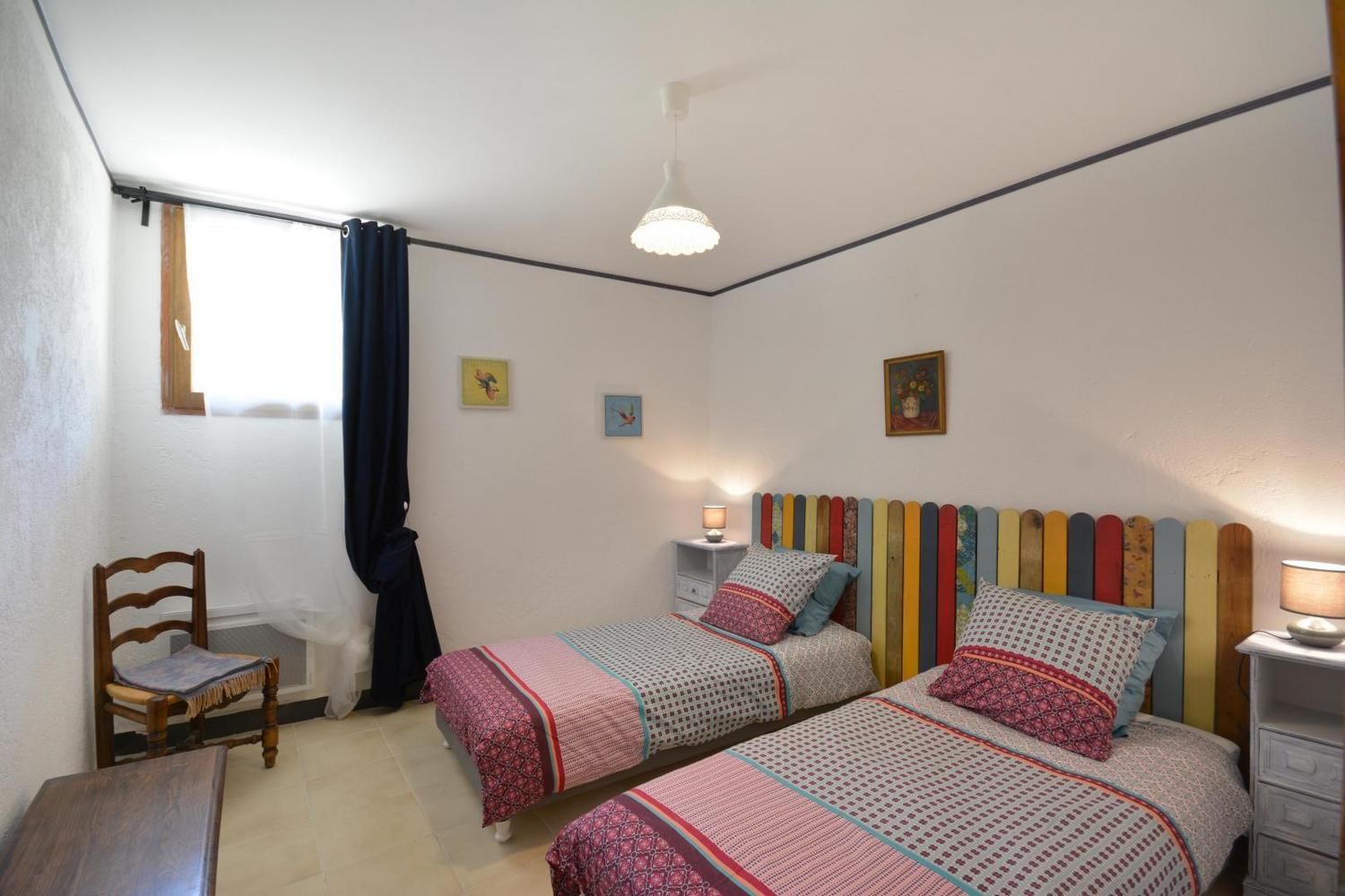 En campagne, le gîte la Bergerie est situé dans un mas du XVIème siècle, sur la façade nord du bâtiment, avec cour privative fermée. Ce gîte a été aménagé avec beaucoup de coeur, avec la volonté d'accueillir au mieux les personnes handicapées et leur entourage. Ce gîte est labellisé Tourisme et Handicap pour les handicaps auditif, mental et visuel. Sur place, deux autres gîtes et l'habitation des propriétaires. Accès via un escalier privatif extérieur à partir du parking. Grande cour ombragée de 130 m² avec salon de jardin et salon détente sur terrasse en bois, barbecue. Entièrement en rez de chaussée : belle pièce de vie lumineuse, avec cuisine équipée ouverte (plaque vitrocéramique, four, micro-ondes, lave-vaisselle), coin salon avec TV écran plat, espace repas. Poêle à bois (1ère flambée gratuite). 1 chambre avec 1 lit 2 personnes (140x190cm) et 1 lit une personne (90x190), dans des couleurs gaies et lumineuses. Une chambre avec 2 lits 1 personne (90x190 cm). Salle d'eau avec douche à l'italienne, meuble vasques double et porte-serviettes chauffant, WC, lave linge. Piscine commune 9 x 4,5 m, profondeur de 1.20 à 1,65 m, accessible de 10h à 20h, ouverte de juin à septembre. Grand espace extérieur commun avec les autres gîtes, table de ping-pong, terrain de pétanque à disposition. Ménage de fin de séjour en option (60 €), draps, linge de toilette et de table en location, Wi-Fi, chauffage électrique en hiver (relevé de compteur). 1 seul chien admis sous conditions : en laisse hors du terrain clos et accès interdit à la piscine Venelles est à 2.5 km et accessible à pied par un chemin rural, vous y trouverez tous les commerces. Une très bel endroit, paisible, entouré de bois, des chevaux dans les prés, la mare et ses grenouilles, les champs de foin et de luzerne, les chemins de randonnée au départ du mas : vous y serez bien !