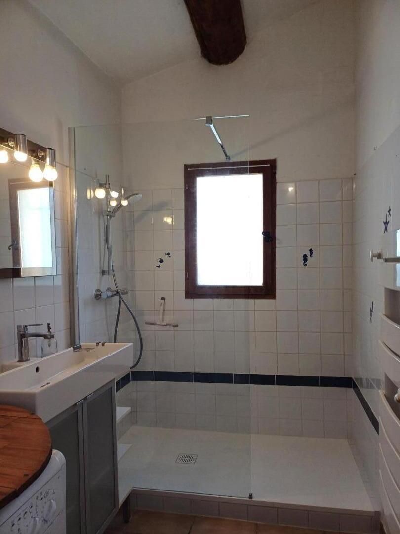En campagne, sur un domaine équestre, le gîte du Pigeonnier est situé dans un mas du XVIème siècle. Il est mitoyen à une écurie et un hangar à foin. Il possède jardin et terrasse privatifs, avec un petit ruisseau dans le jardin... Beaucoup de cachet dans ce gîte qui est un ancien pigeonnier transformé en gîte. 3 autres gîtes et l'habitation des propriétaires sur place. Parking privatif sur la propriété. Au rez-de-chaussée : séjour avec cuisine équipée ouverte (plaque induction, four, micro-ondes, lave-vaisselle), coin salon avec TV écran plat, cheminée insert (1ère brouette de bois offerte), canapé et fauteuils, espace repas, jeux de société et petite bibliothèque. A l'étage : 1 chambre avec 1 lit 2 personnes 160x200cm et 1 chambre avec 2 lits 1 personne 90x190cm, vue sur la campagne et les chevaux depuis les 2 chambres. Salle de bain avec baignoire, vasque, porte-serviettes chauffant et lave-linge. WC séparés. Terrasse privative 15 m² gravillonnée avec salon de jardin, jardin de 150 m² environ avec ruisseau non protégé (attention à la sécurité des jeunes enfants, ils doivent être sous la surveillance des parents). Barbecue. Piscine commune 9 x 4,5 m, profondeur de 1.20 à 1,65 m, accessible de 10h à 20h, ouverte de juin à septembre. Table de ping-pong, terrain de pétanque à disposition. Libre accès à la propriété de 45 hectares. Forfait chauffage (au relevé de compteur) en hiver. Ménage de fin de séjour en option (60 €), draps, linge de toilette et de table en location. Wi-Fi. Animaux acceptés gratuitement sous conditions : 1 chien maximum, tenu en laisse sur la propriété, ramassage des déjections obligatoire. Venelles est à 2.5 km et est accessible à pied par un chemin rural, vous y trouverez tous les commerces.