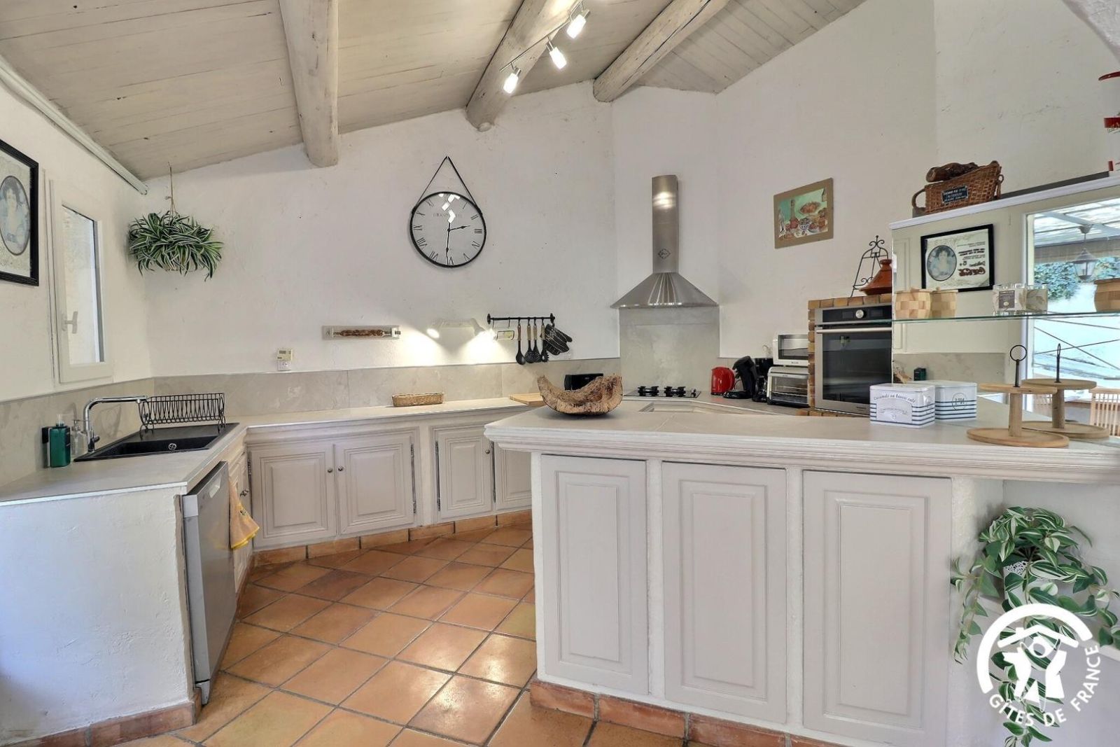 - Une cuisine ouverte de 20 m2 toute équipée : lave-vaisselle, four, micro-onde, hotte aspirante, plaque 2 feux gaz et 2 feux électriques