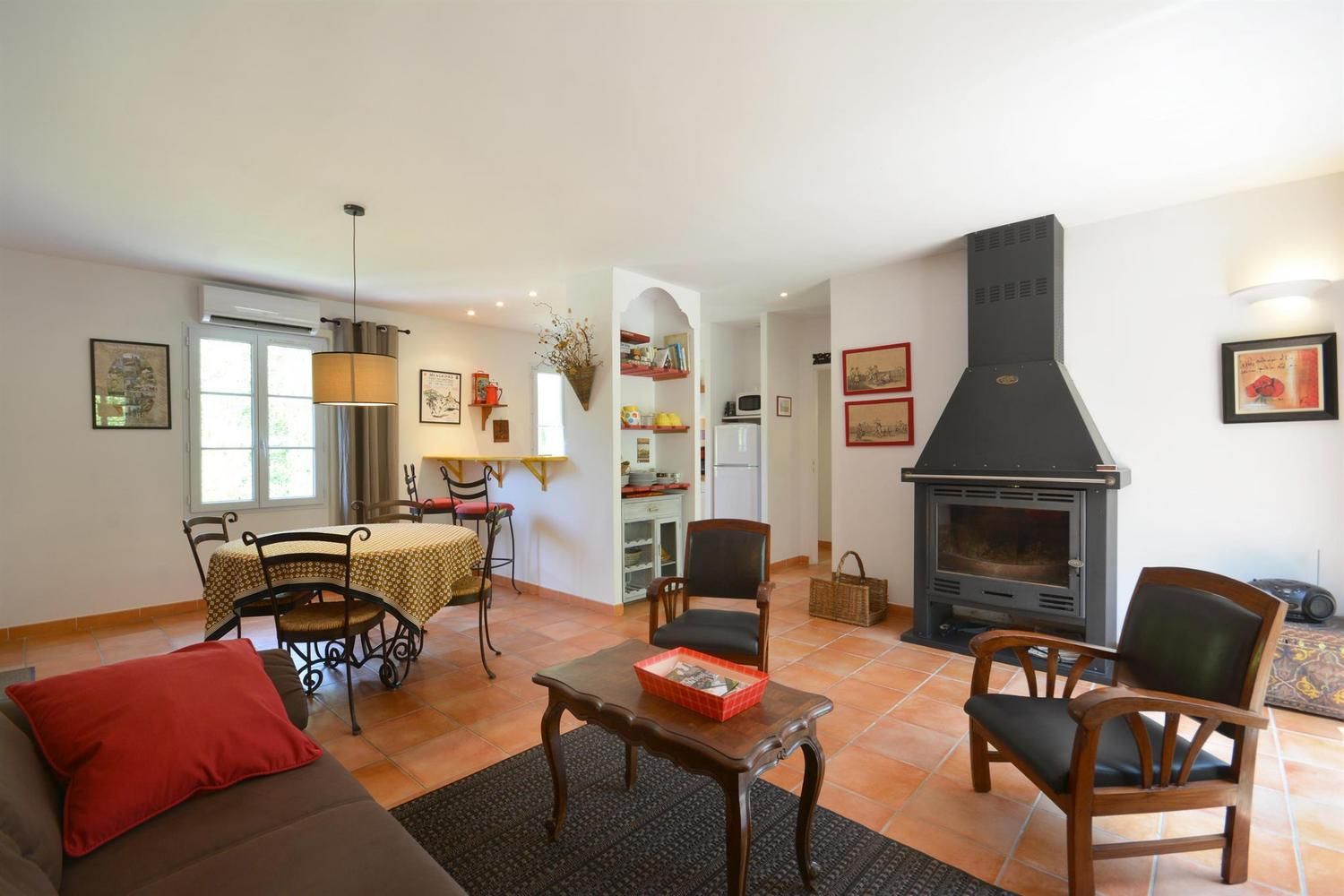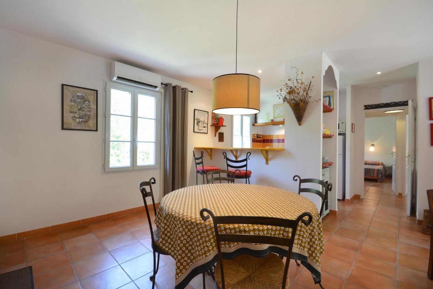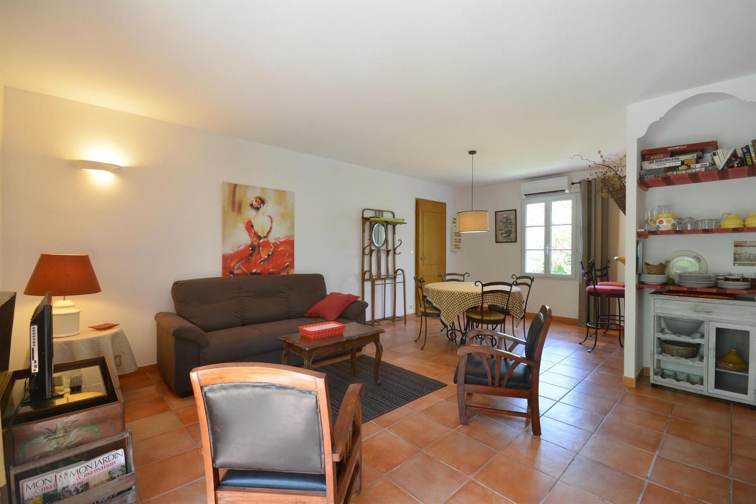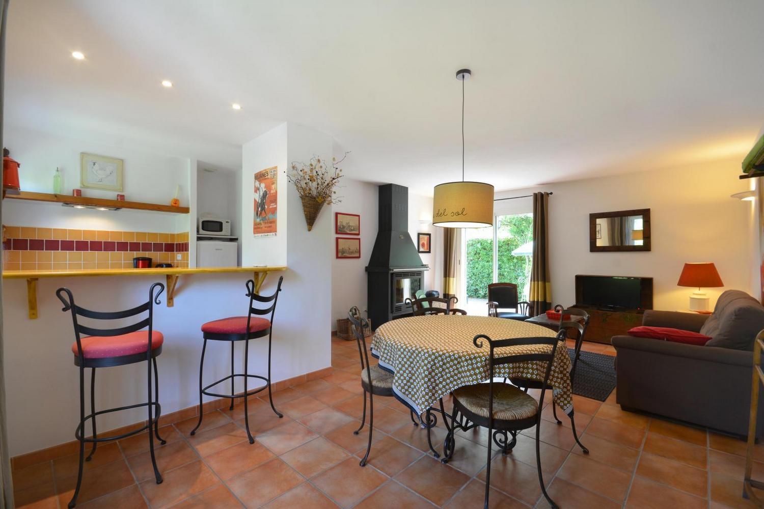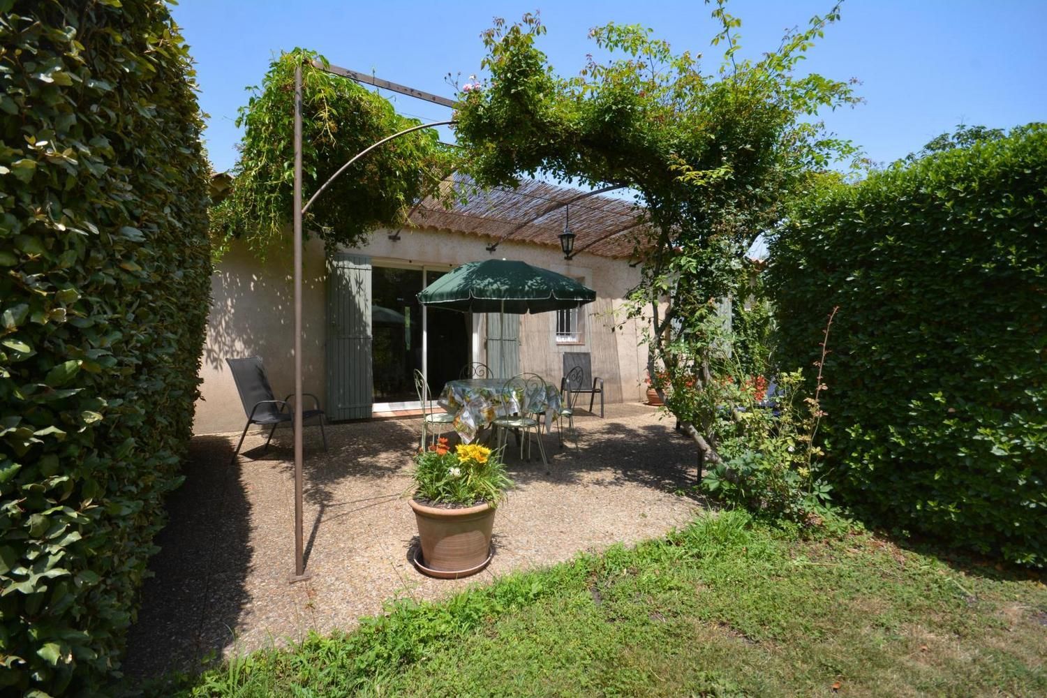 Au coeur des Alpilles et à proximité de sites touristiques majeurs, gîte en campagne, mitoyen, sans vis-à-vis avec le gîte G297 ("Le Midi") et la maison des propriétaires. Aménagement de qualité, décoration d'un goût très sûr, et un espace largement ouvert sur la terrasse et les espaces verts de la propriété. Rez de chaussée : cuisine/séjour avec cheminée/insert (bois fourni et gratuit), TV écran plat. Cuisine intégrée (micro-ondes, lave-linge, lave-vaisselle). 1 chambre (1 lit/2 personnes en 160 cm) orientée plein sud. 1 chambre (2 lits/1 personne). Salle d'eau. WC indépendant. Draps inclus. Chauffage électrique inclus, climatisation réversible (forfait 30€/semaine en juin, juillet et août). Kit bébé complet à la demande. Wi-fi. Terrasse privative de 34 m2 (sud) avec pergola ombragée l'été, salon de jardin et barbecue. Jardin commun particulièrement fleuri de 4000 m², parking sur la propriété fermée, balançoires. Ménage sur demande en supplément.