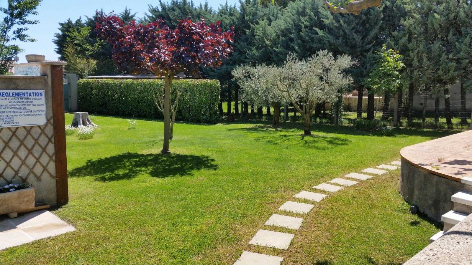 Studio climatisé, aménagé dans les dépendances d'une maison comprenant les gîtes 13G910840 et 13G910839 (Gîtes Christelle et Alice), à proximité de la villa des propriétaires dans le village de Mouriès. Propriété entièrement close (portail automatique : télécommande à disposition). Entièrement en rez de chaussée : séjour/cuisine/coin chambre séparé par rideau ( lit 2 personnes), télévision. Salle d'eau/WC. Lit bébé sur demande. Chauffage central (forfait 30€/semaine). Wi-Fi. Location draps (10€/paire/séjour). Lave-linge commun. Terrasse privée de 12 m² avec salon de jardin. Équipements communs : jardin gazonné de 2000 m², cour, parking fermé, piscine sécurisée (6x14 m) du 01/05 au 30/09. Animaux admis sous conditions : se renseigner auprès du propriétaire.