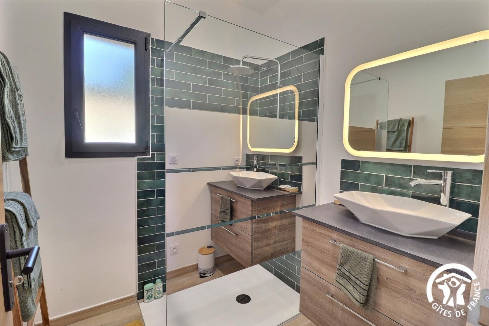 - une salle d'eau avec douche à l'italienne et meuble vasque