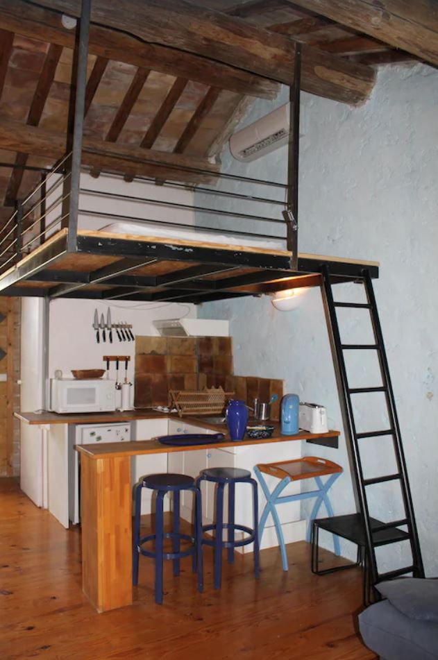 - 1 lit 140 pour 2 personnes sur la mezzanine.