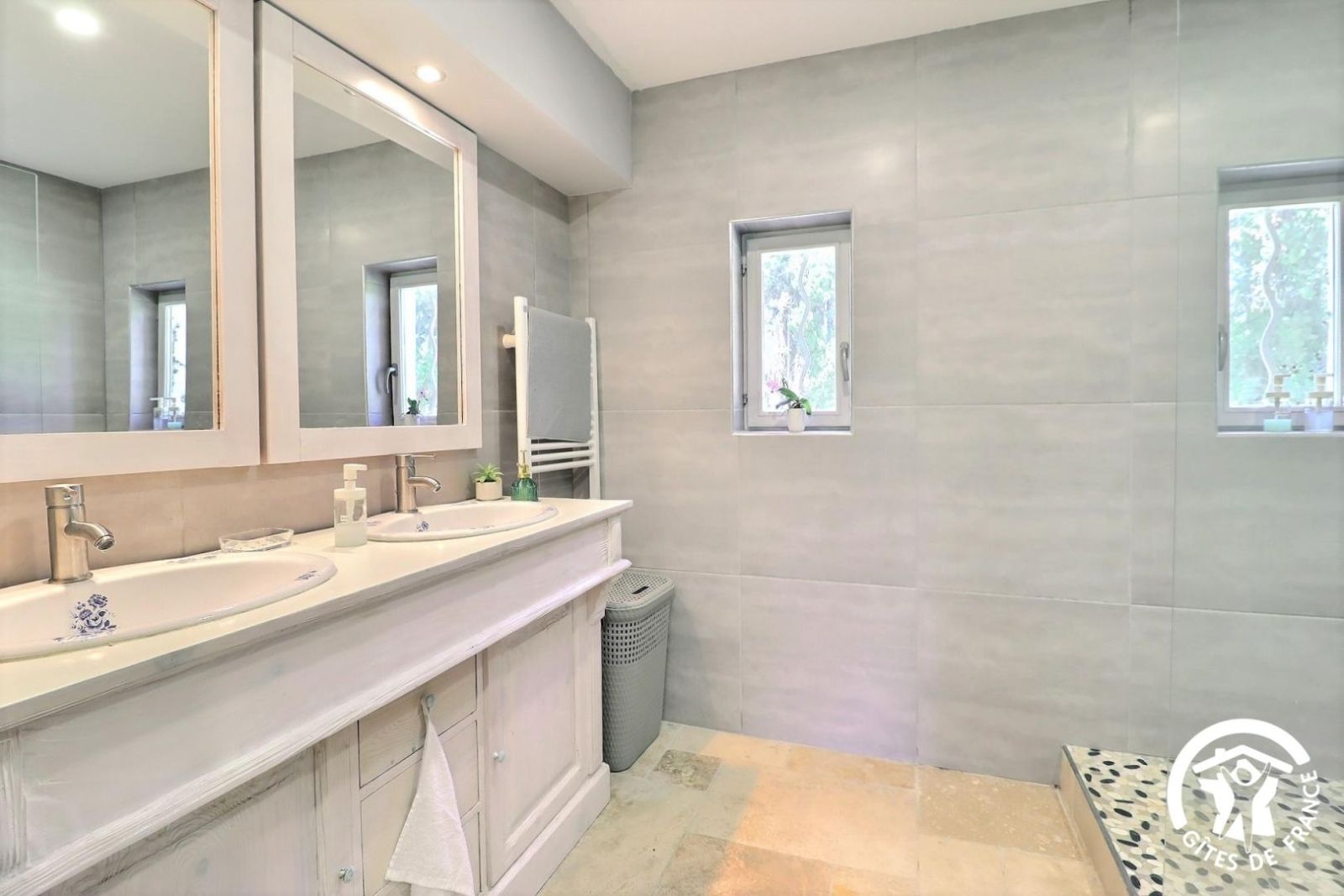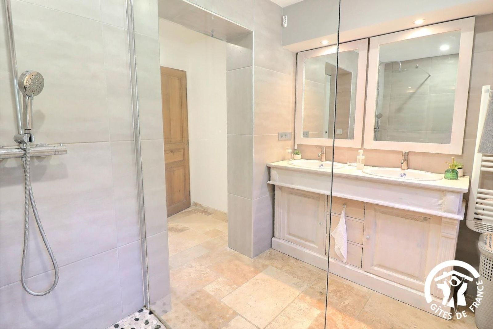 - Salle d'eau avec grande douche à l'italienne 200x100cm, double vasque et porte-serviettes chauffant.