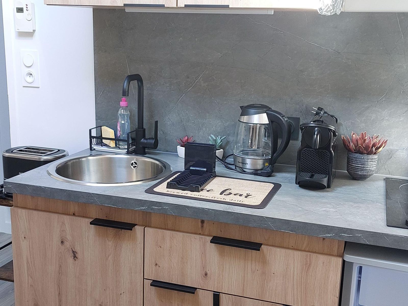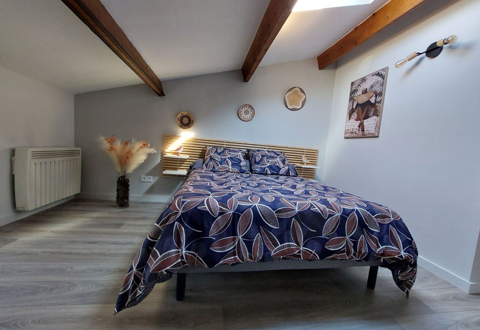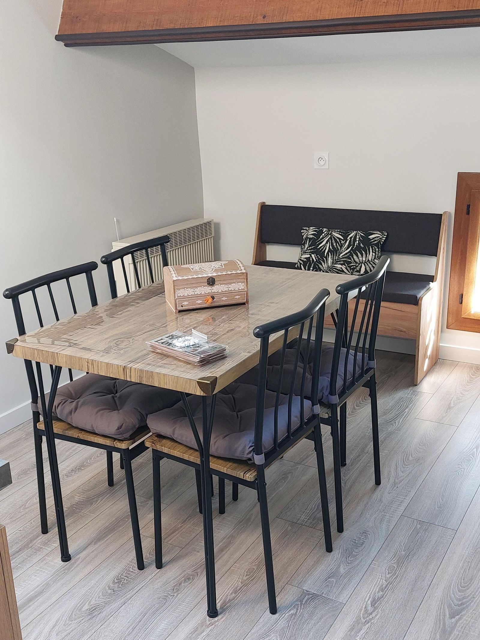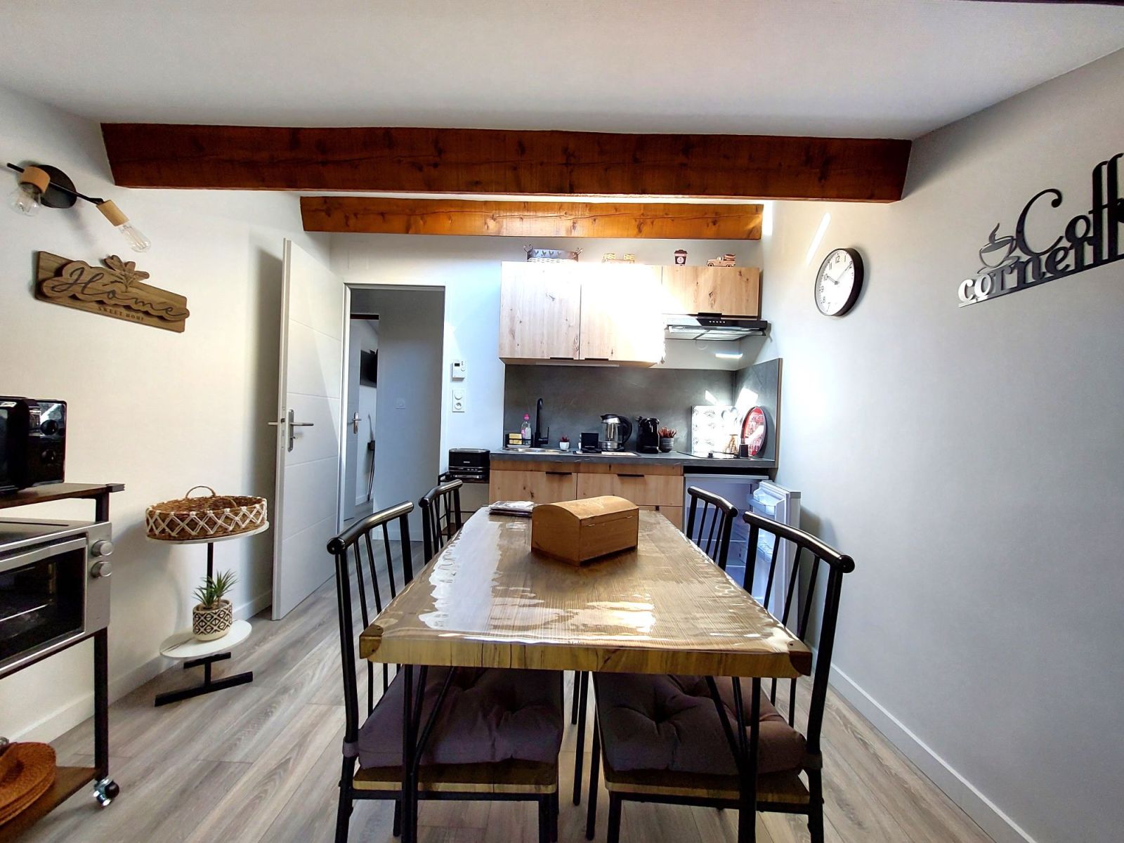 Gîte coquet, en sous-pentes, pour 2 personnes avec entrée indépendante et jardin commun, équipé de neuf, comprenant une chambre avec un lit en 140x190, une salle de bain avec douche et une kitchenette équipée. À compter de 2 nuits
