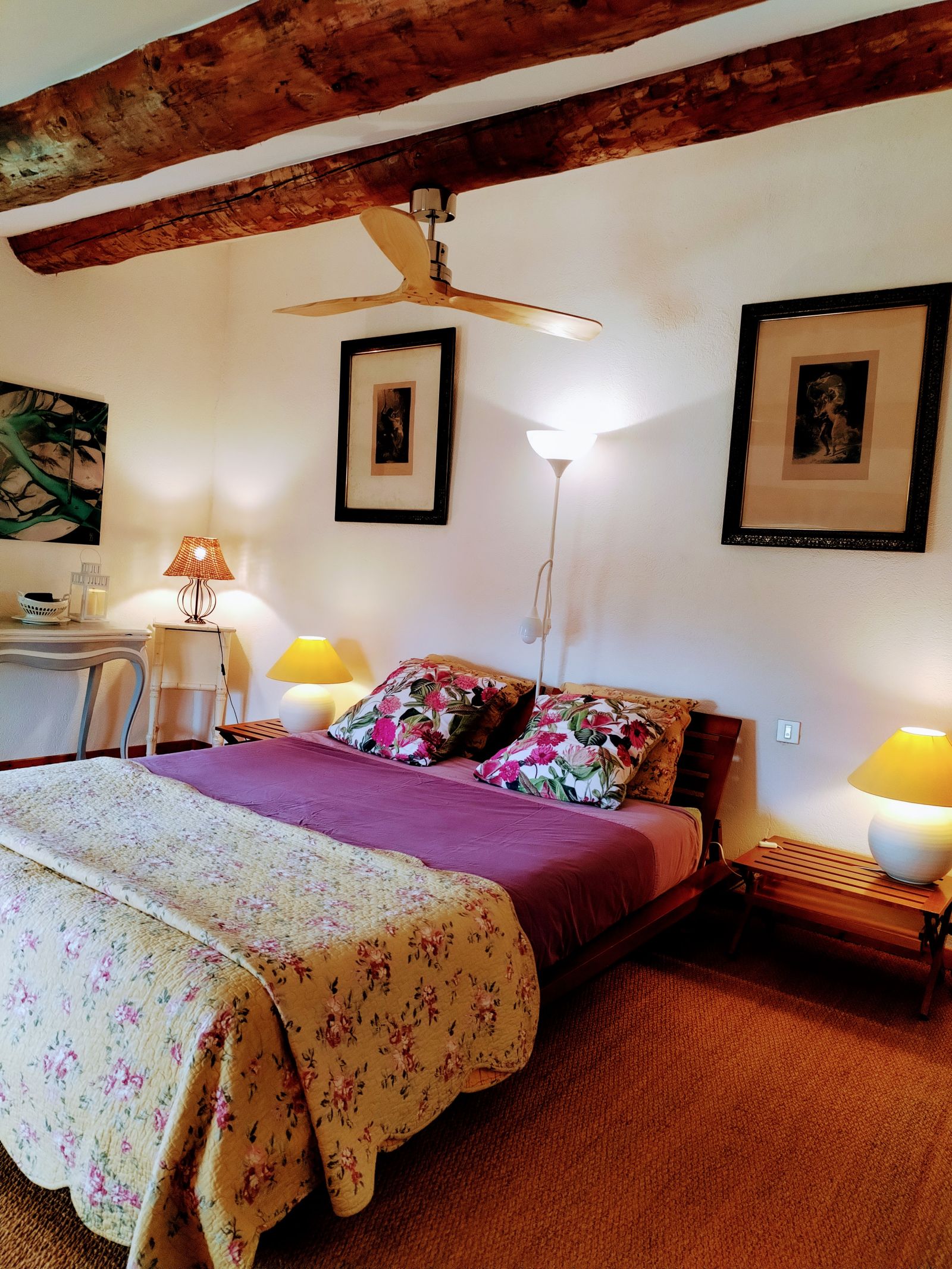 Dans notre Mas du XVIIIe, entouré de vignes et d'oliviers, vous disposerez de notre 2ème étage avec un accès indépendant. Vous y trouverez deux chambres, une terrasse panoramique, une salle à manger avec une mini cuisine. La mini cuisine comporte : un frigo, 2 plaques électriques, un micro-onde grill, une bouilloire, grille pain, une cafetière Bodum, café, thé et tisane à disposition (le lavabo est dans la salle de bain juste à côté). Notre piscine vous est ouverte de mi-mai à mi-octobre. Les draps et serviettes de toilettes sont fournis sans suppléments.