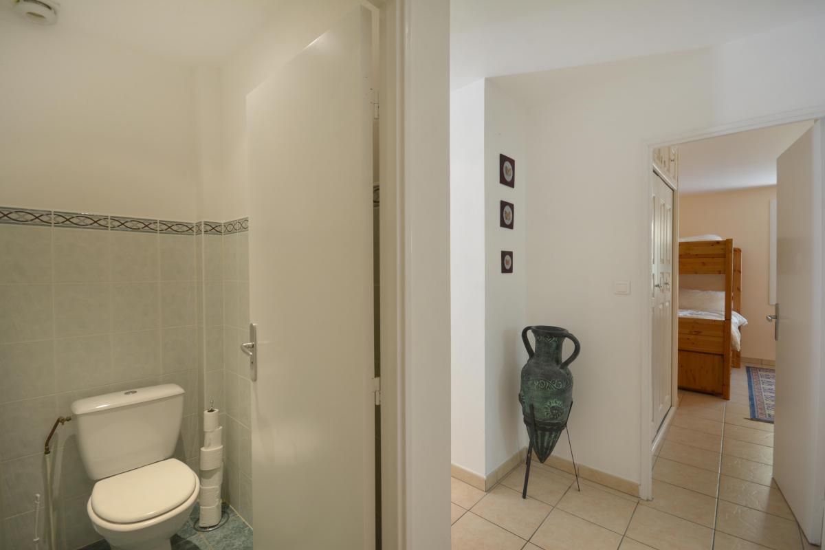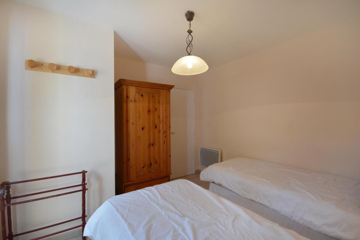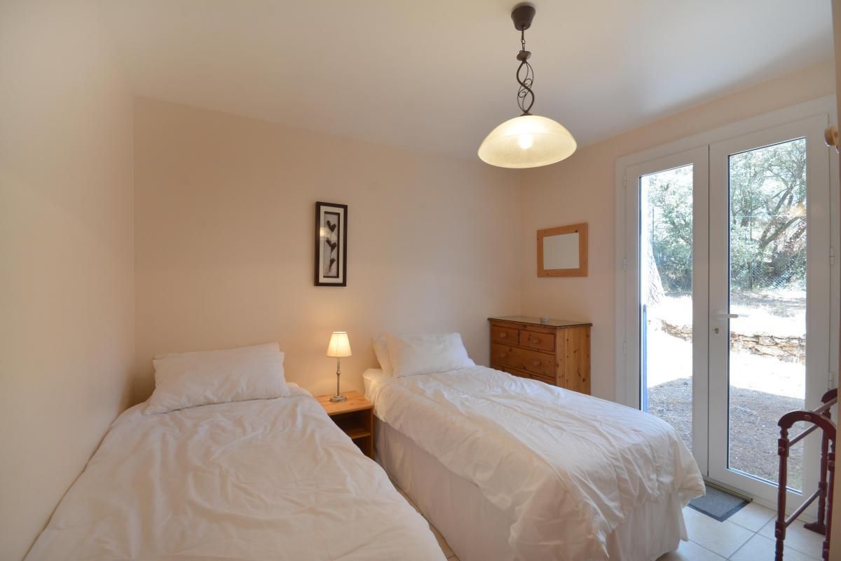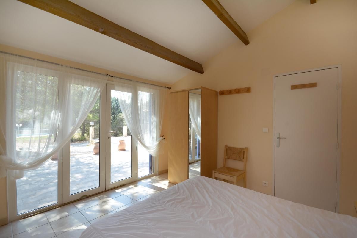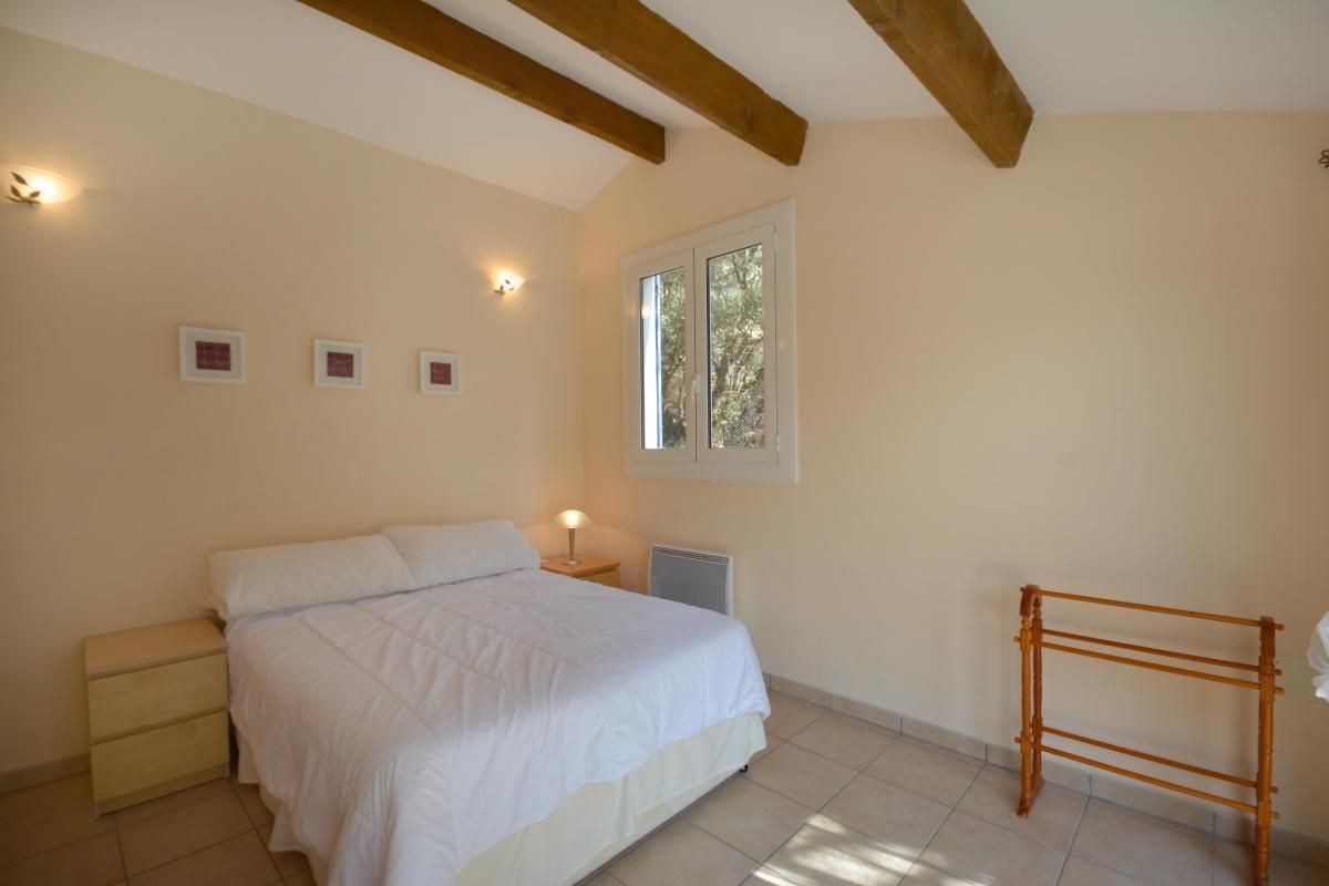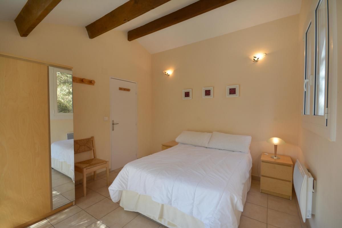 - 1 chambre avec 1 lit 2 personnes 140x190cm, avec accès à la terrasse via une porte-fenêtre.