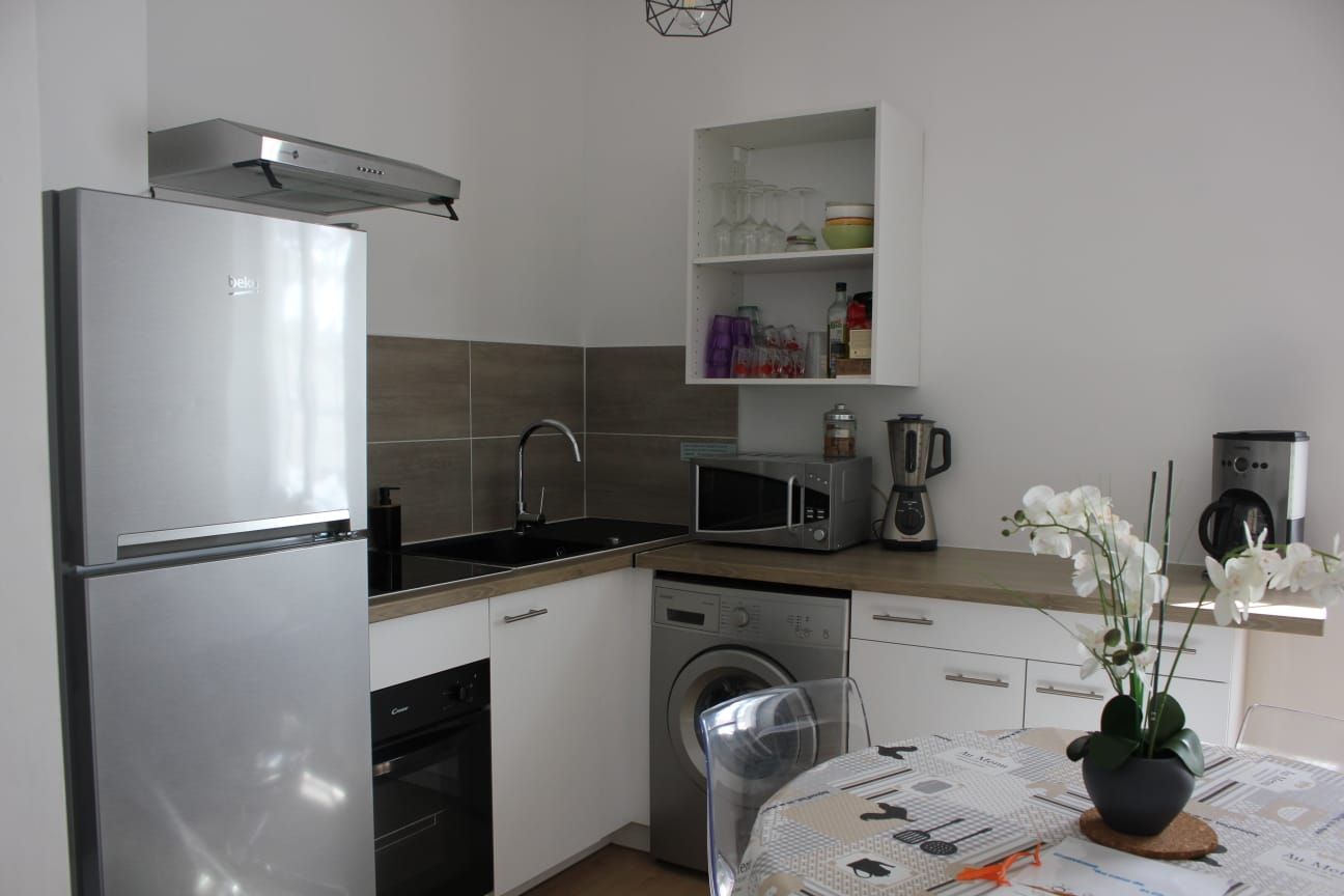 L'appartement dispose d'un lit double dans la grande chambre avec un BZ et une TV. Le salon possède un canapé lit pour 2 personnes. Un lit parapluie est à votre disposition ainsi qu'une barrière de sécurité pour les escaliers et des jeux pour eux. Cuisine équipée four, frigo, congélateur, micro-ondes, cafetière à filtre avec café fourni. Une TV avec WIFI dans le salon, salle de bain avec douche et le nécessaire de toilette fourni. WC séparé.