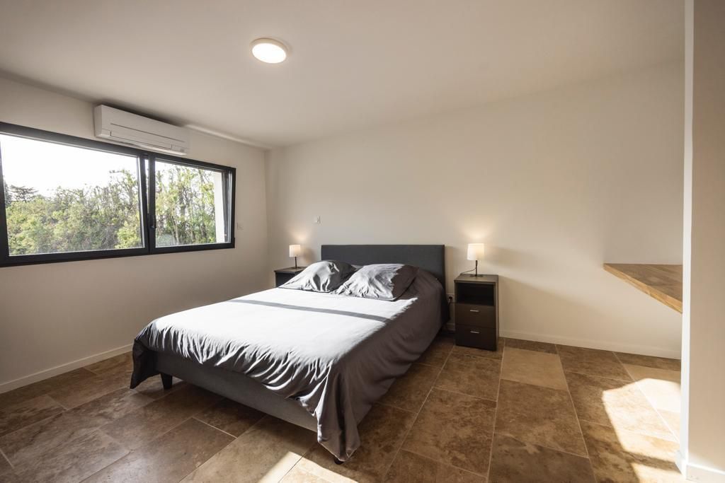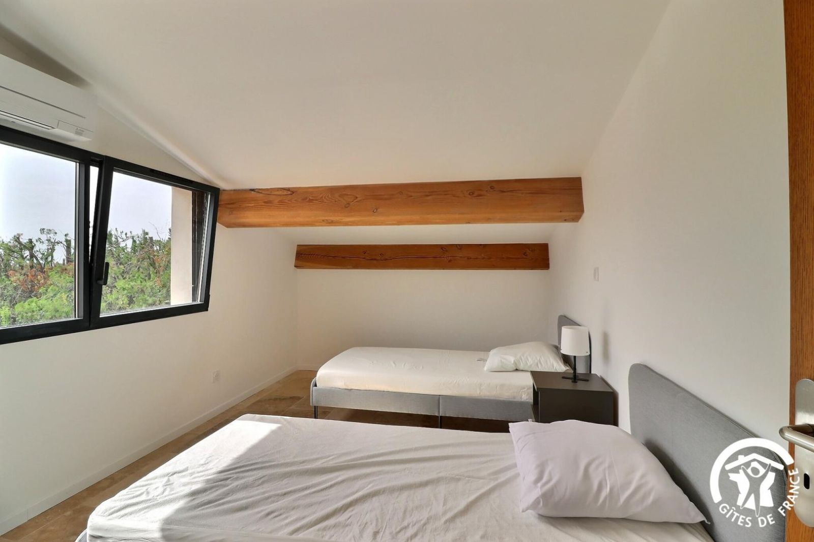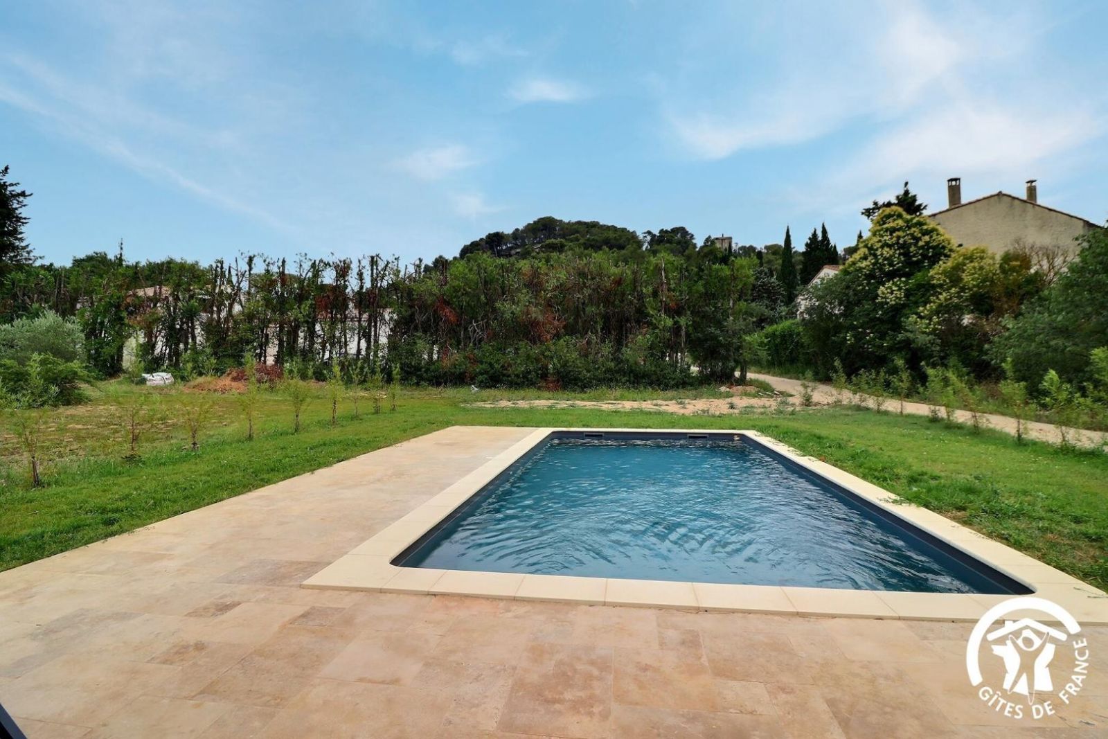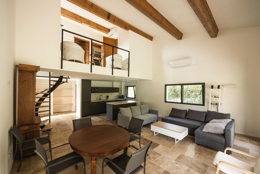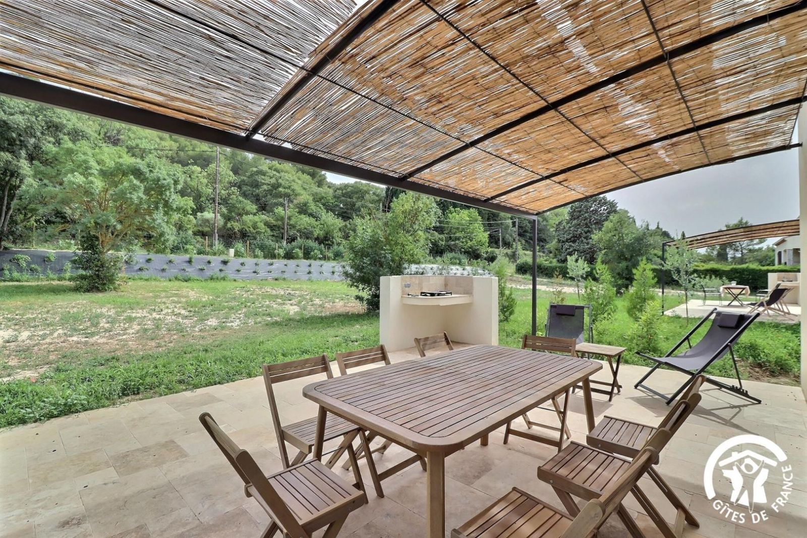 Gîte construit en 2023 avec de beaux matériaux, avec terrasse privative, jardin et piscine communs, situé sur le Parc Naturel Régional des Alpilles, dans un environnement préservé.