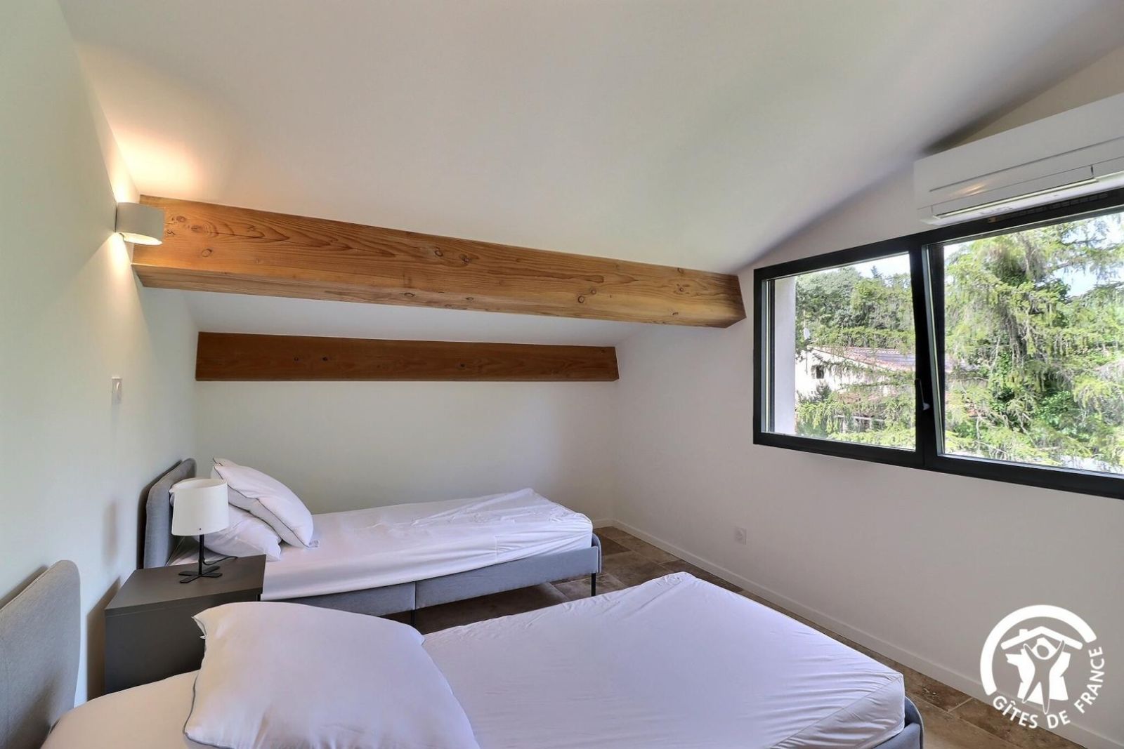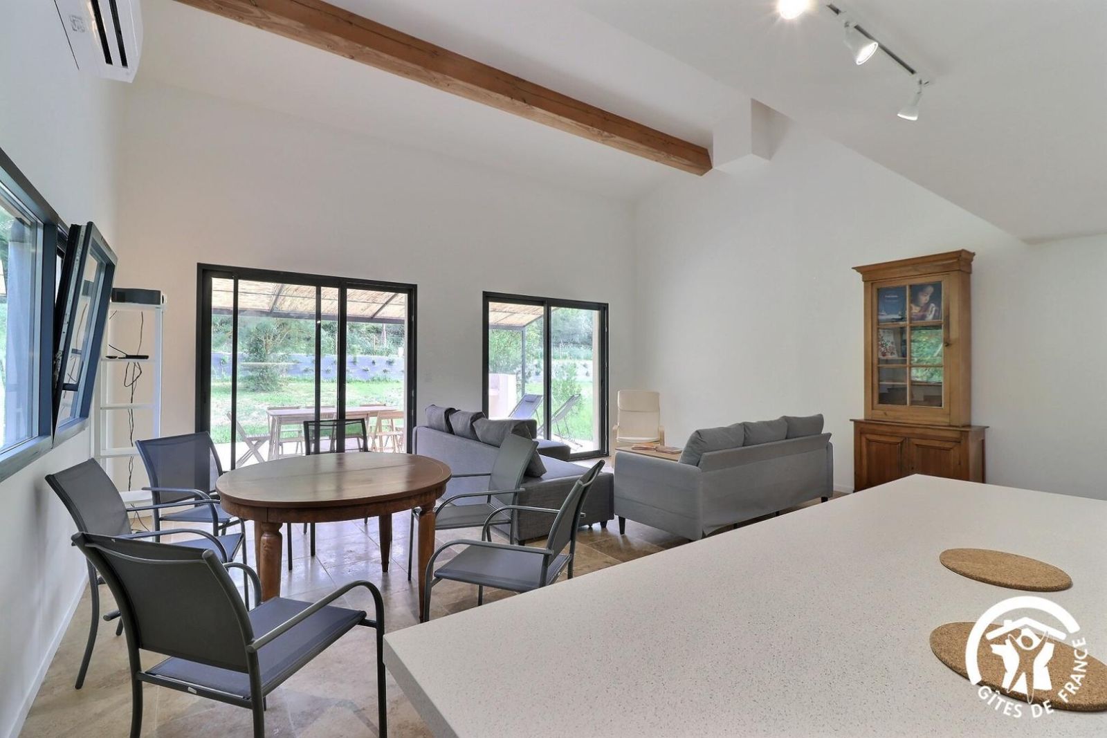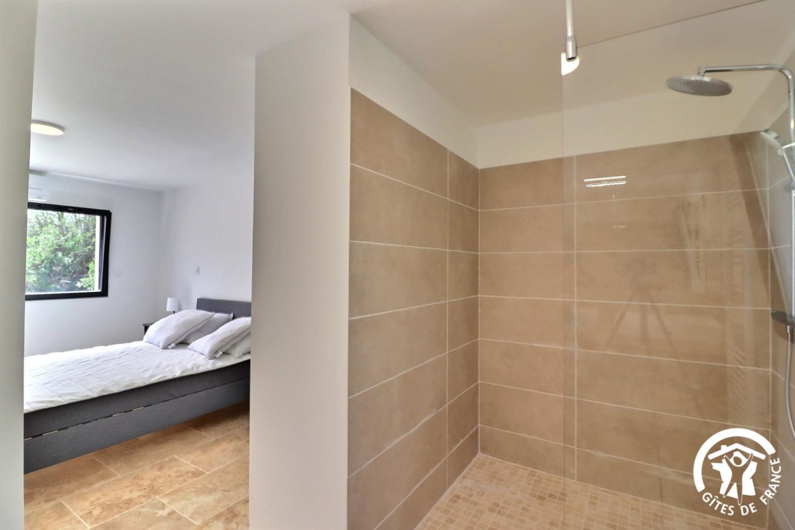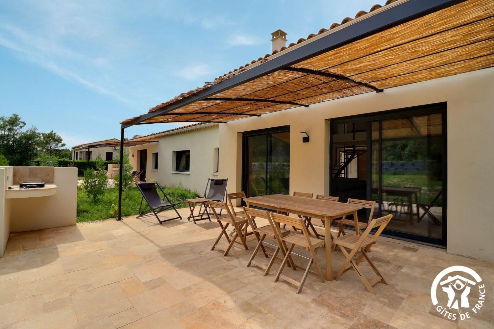 Gîte construit en 2023 avec de beaux matériaux, avec terrasse privative, jardin et piscine communs, situé sur le Parc Naturel Régional des Alpilles, dans un environnement préservé.
