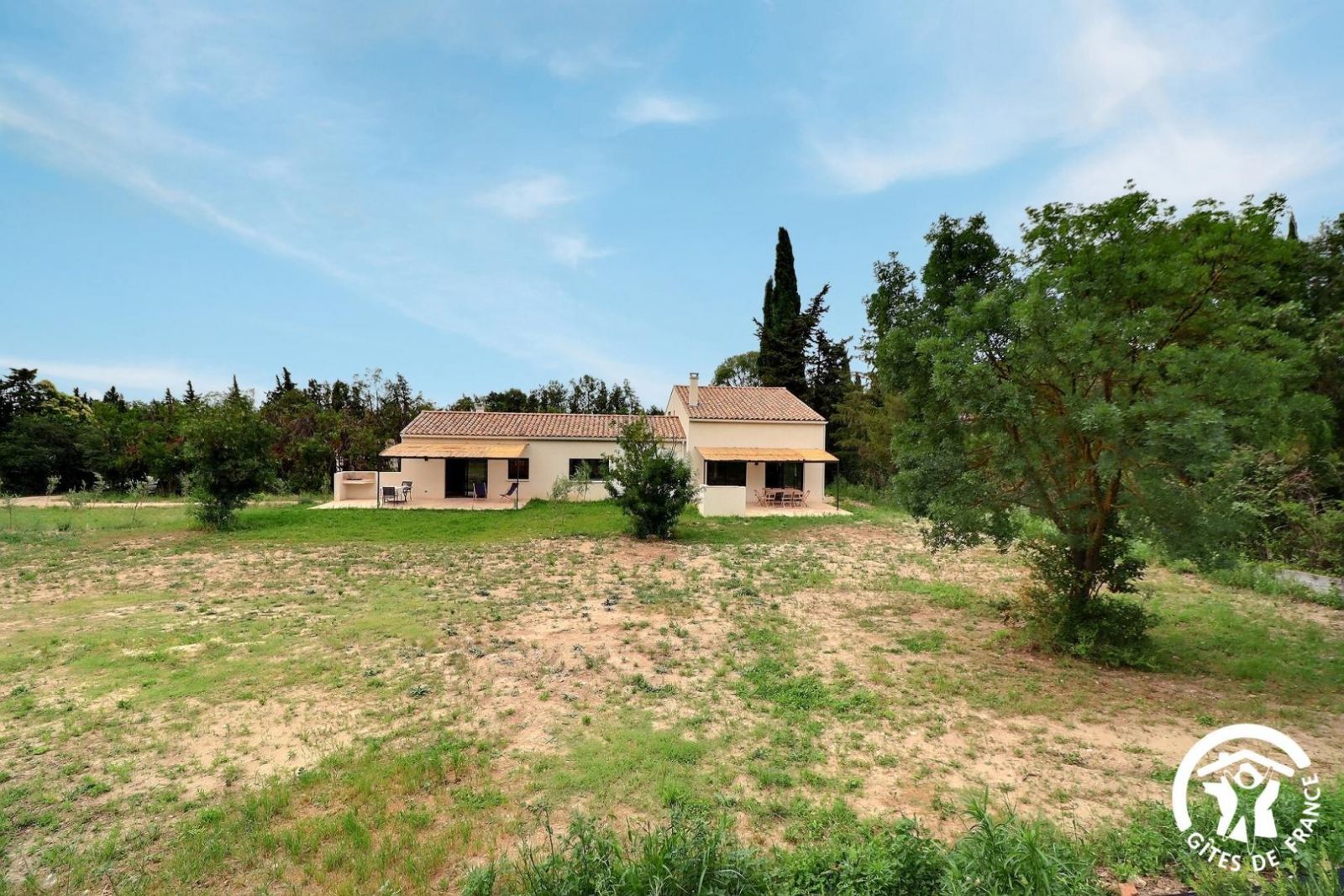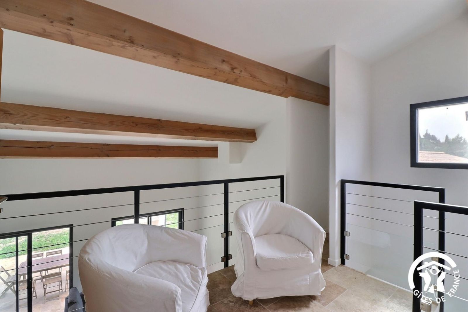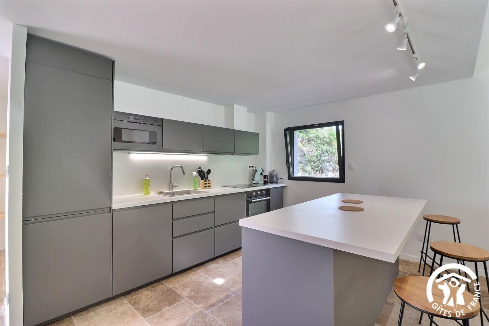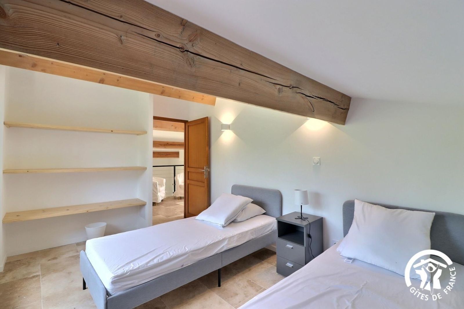Gîte construit en 2023 avec de beaux matériaux, avec terrasse privative, jardin et piscine communs, situé sur le Parc Naturel Régional des Alpilles, dans un environnement préservé.