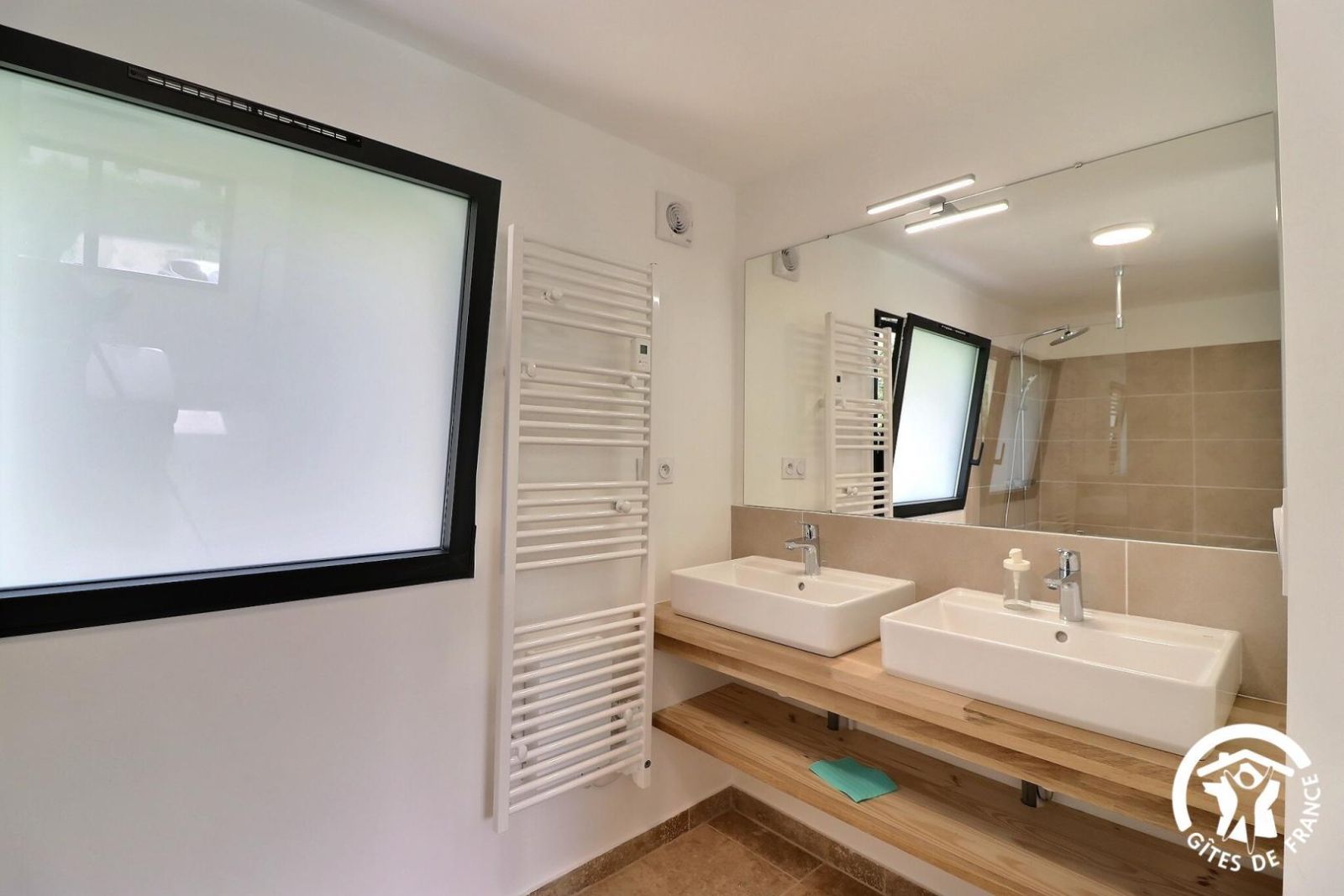 - Salle d'eau avec très grande douche à l'italienne 140x160cm, double vasque et porte-serviettes chauffant.