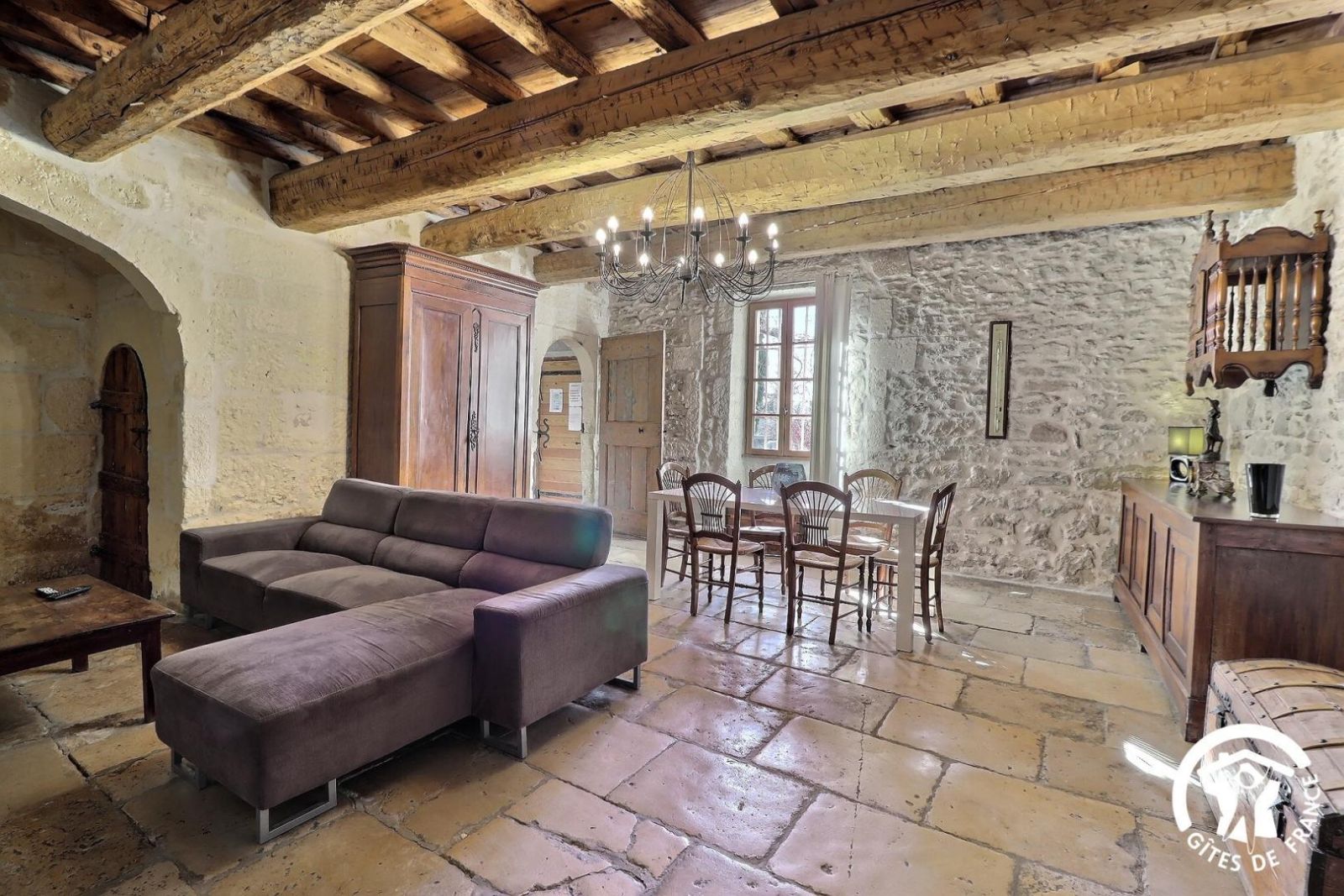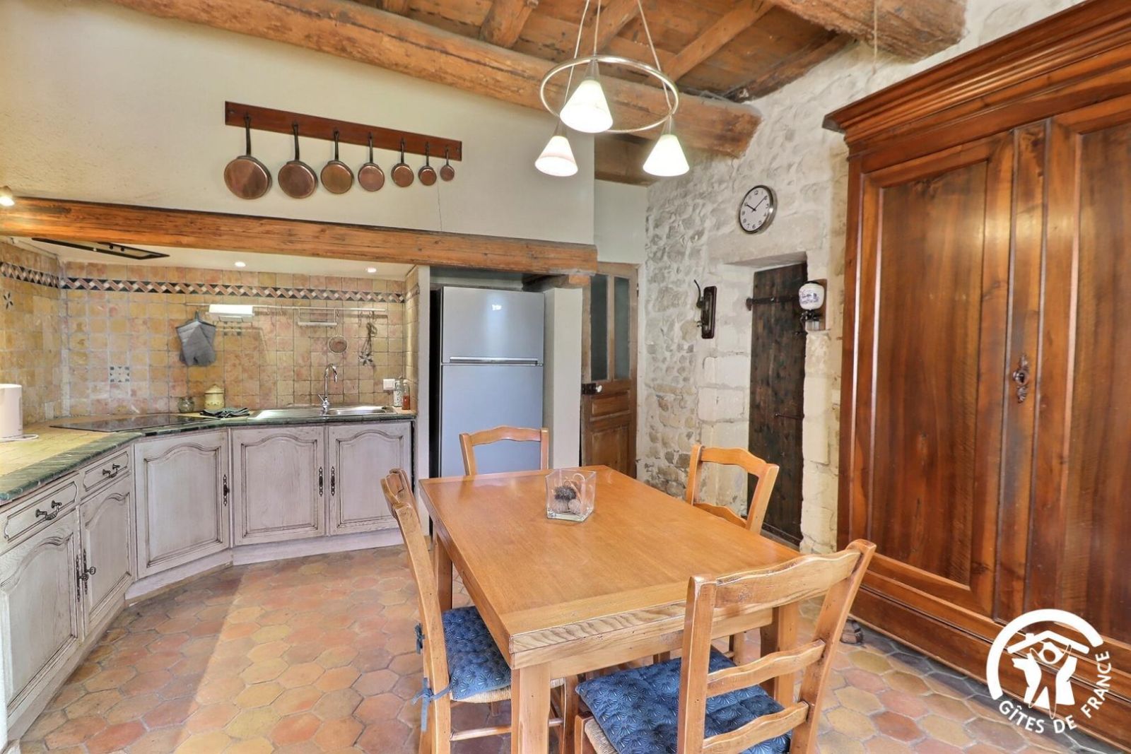 En campagne, face au Château du Breuil, le gîte du Petit Mas de Mourgues est situé sur une exploitation agricole, dans un mas du XIVème siècle, et est mitoyen à la maison des propriétaires et à une location à l'année, mais dispose de son propre espace extérieur privatif avec piscine et jacuzzi. Le gîte présente beaucoup de cachet, avec des sols anciens, de la pierre au mur, des poutres apparentes, escalier en pierre ancien... En rez-de-chaussée :