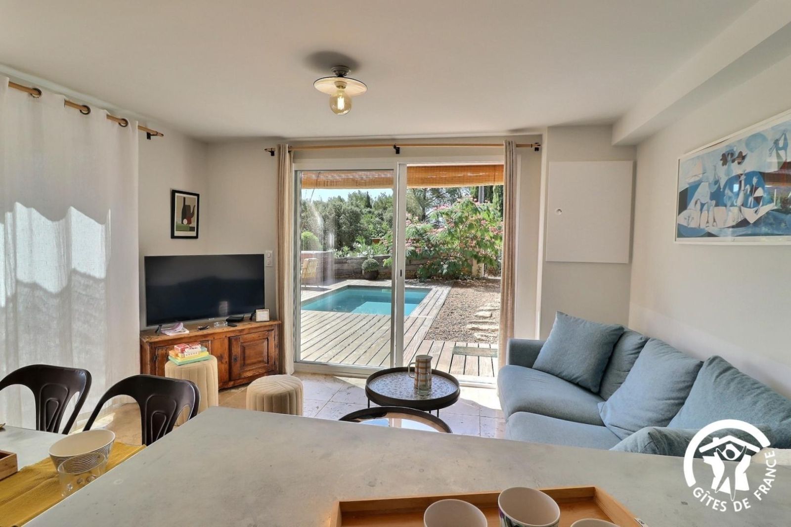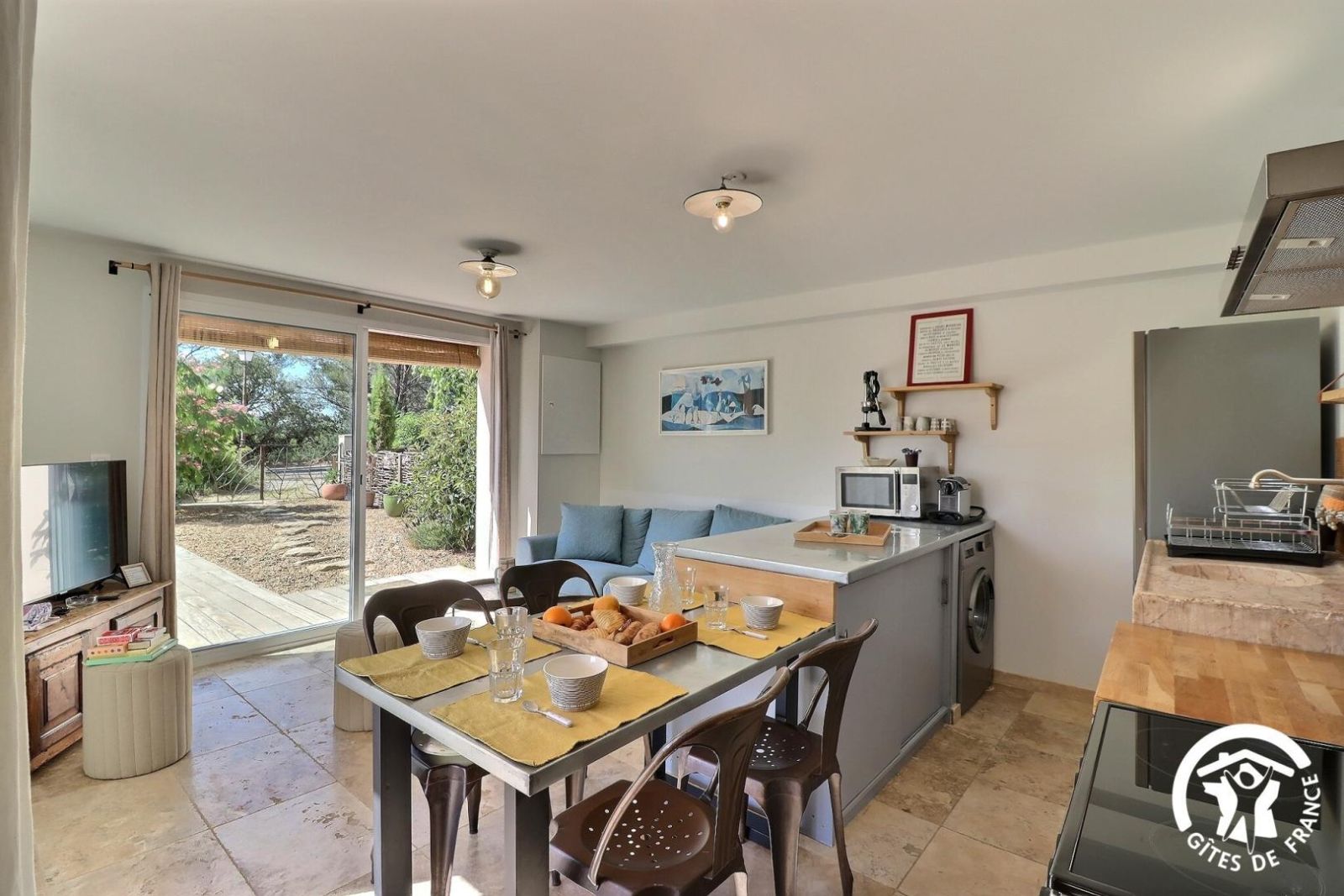 La Petite Maison est un gîte 4 personnes au pied de la Sainte-Victoire avec un jardin de 90m2, terrasse et piscine chauffée avec plage.