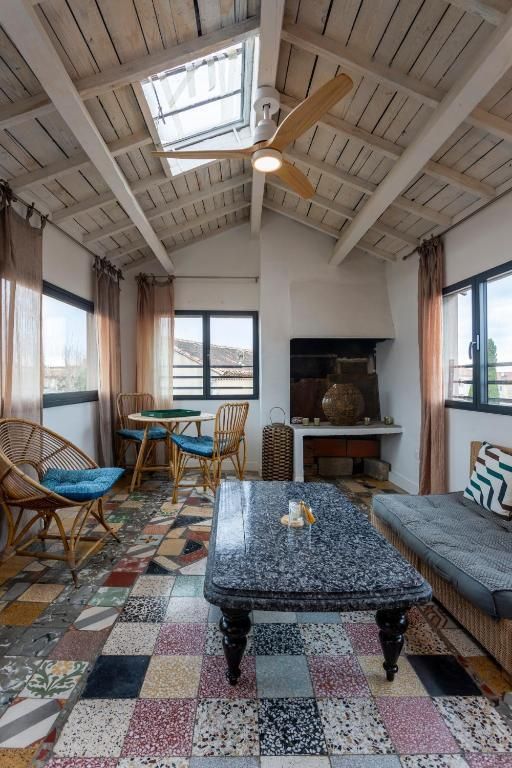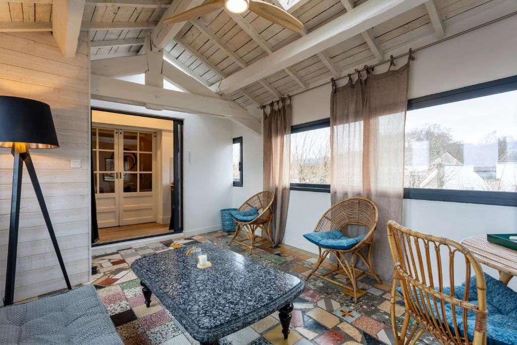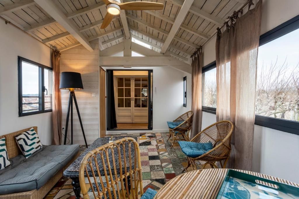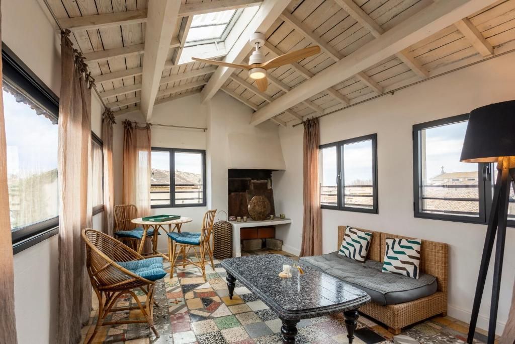 Le 9 Victor Hugo : Maison de charme ensoleillée, plein Sud, loft en triplex authentique intra muros avec cuisine Sud aménagée équipée, un séjour-salon lumineux avec sols en tomettes anciennes, une buanderie, deux chambres Sud en parquet avec une salle d’eau et un wc et au dernier étage, sous les toits , une charmante suite parentale avec sa salle d’eau privative et une baie vitrée ouvrant sur une agréable terrasse couverte et fermée ou la vue panoramique vous fera découvrir toute la ville de Saint rémy de Provence avec ses toitures, son église et les Alpilles.
